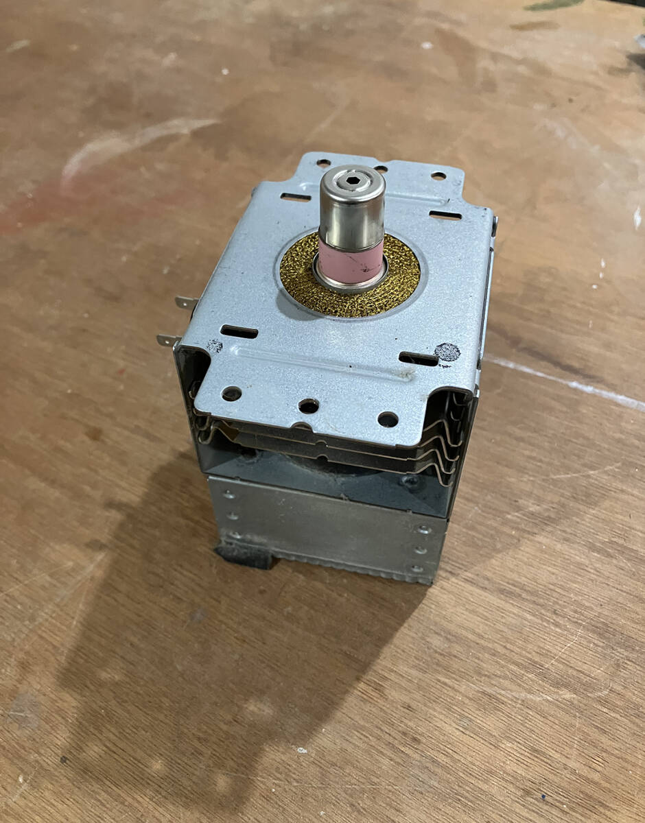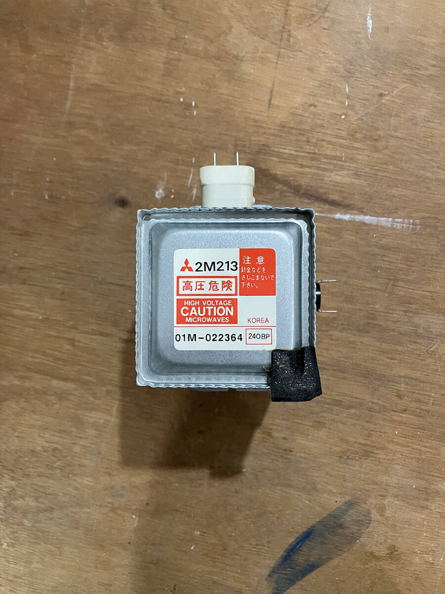 500wレンジからの取り外し品のマグネトロン、コンデンサー、トランスの3点セットになります。
