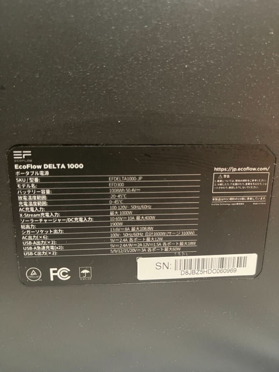 EcoFlow エコフロー EFDELTA1000-JP DELTA1000 デルタ1000 ポータブル電源 EFD300 です。