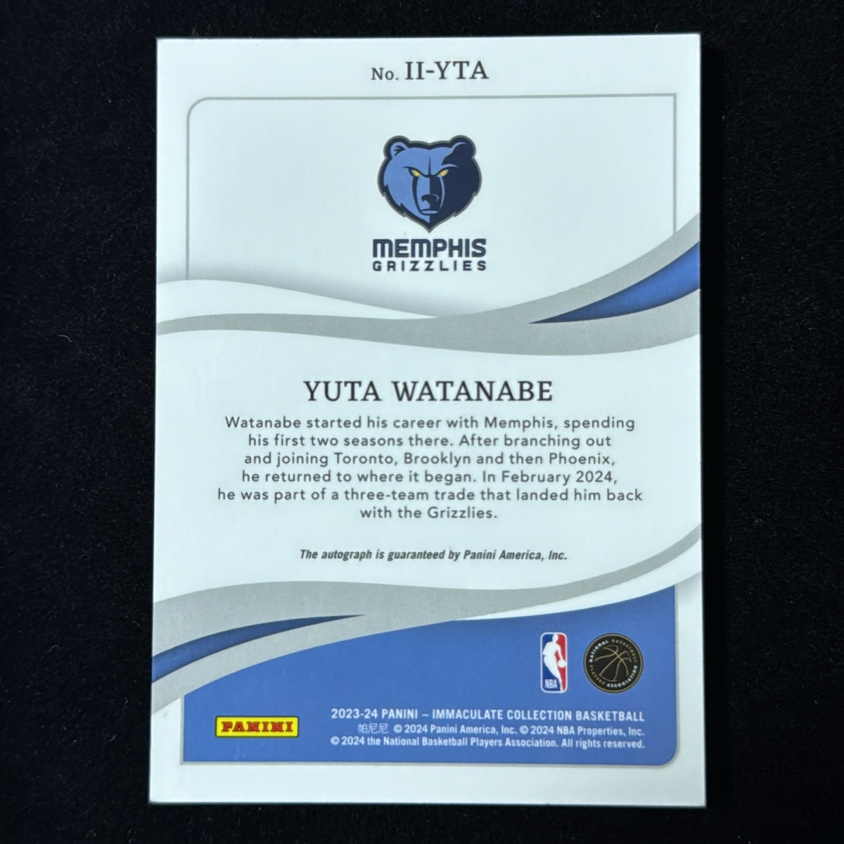 渡邊雄太 Watanabe Yuta Panini Immaculate 2023-24 /99 Autograph Auto サイン 直筆 グリズリーズ Grizzlies