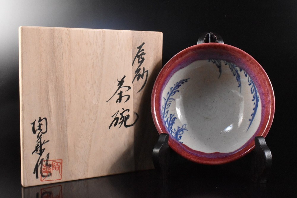 | 商品名 | 【雲】某収集家買取品 清水 紫釉花絵付抹茶碗 在銘 共箱 古美術品(茶道具) K5817 |