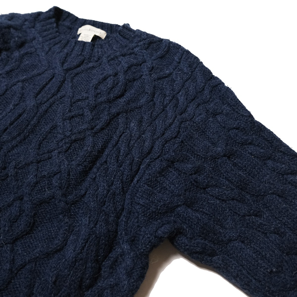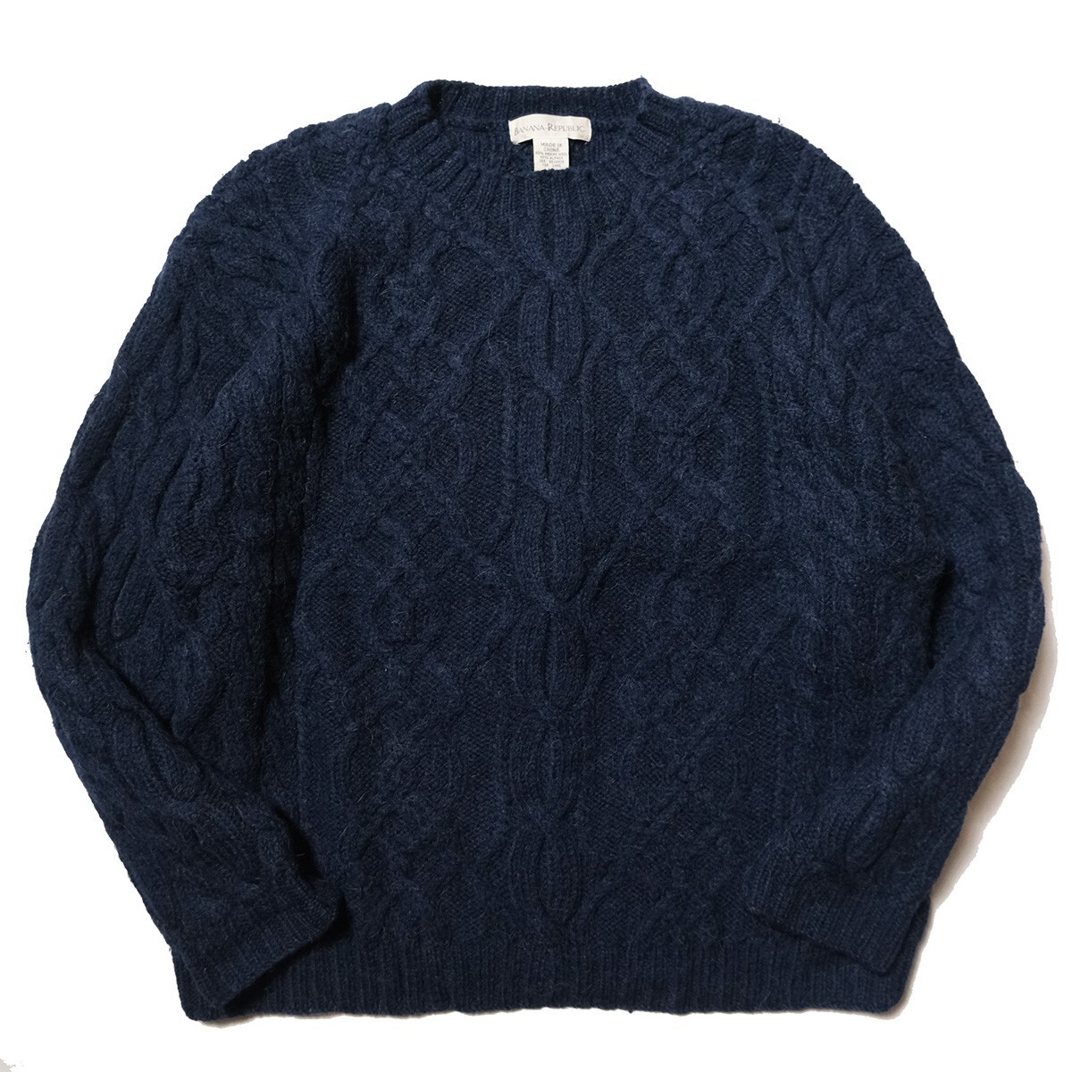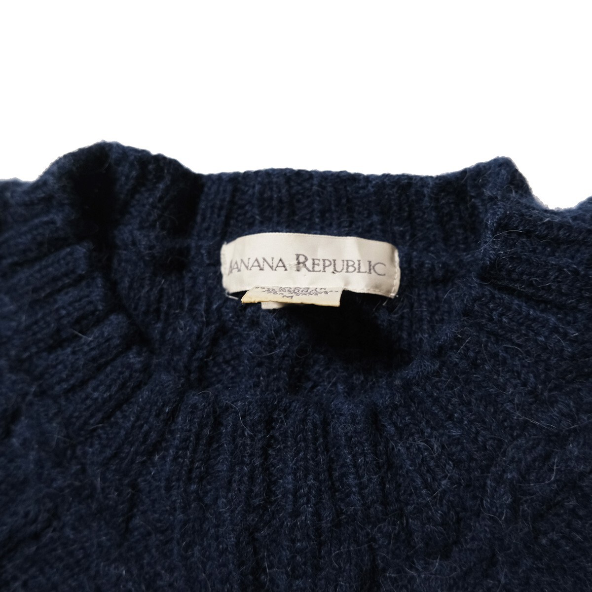 90's バナナリパブリック アルパカ メリノウール クルーネック ニットセーター (M) 紺系 バナリパ ケーブル編み 90年代 旧タグ オールド