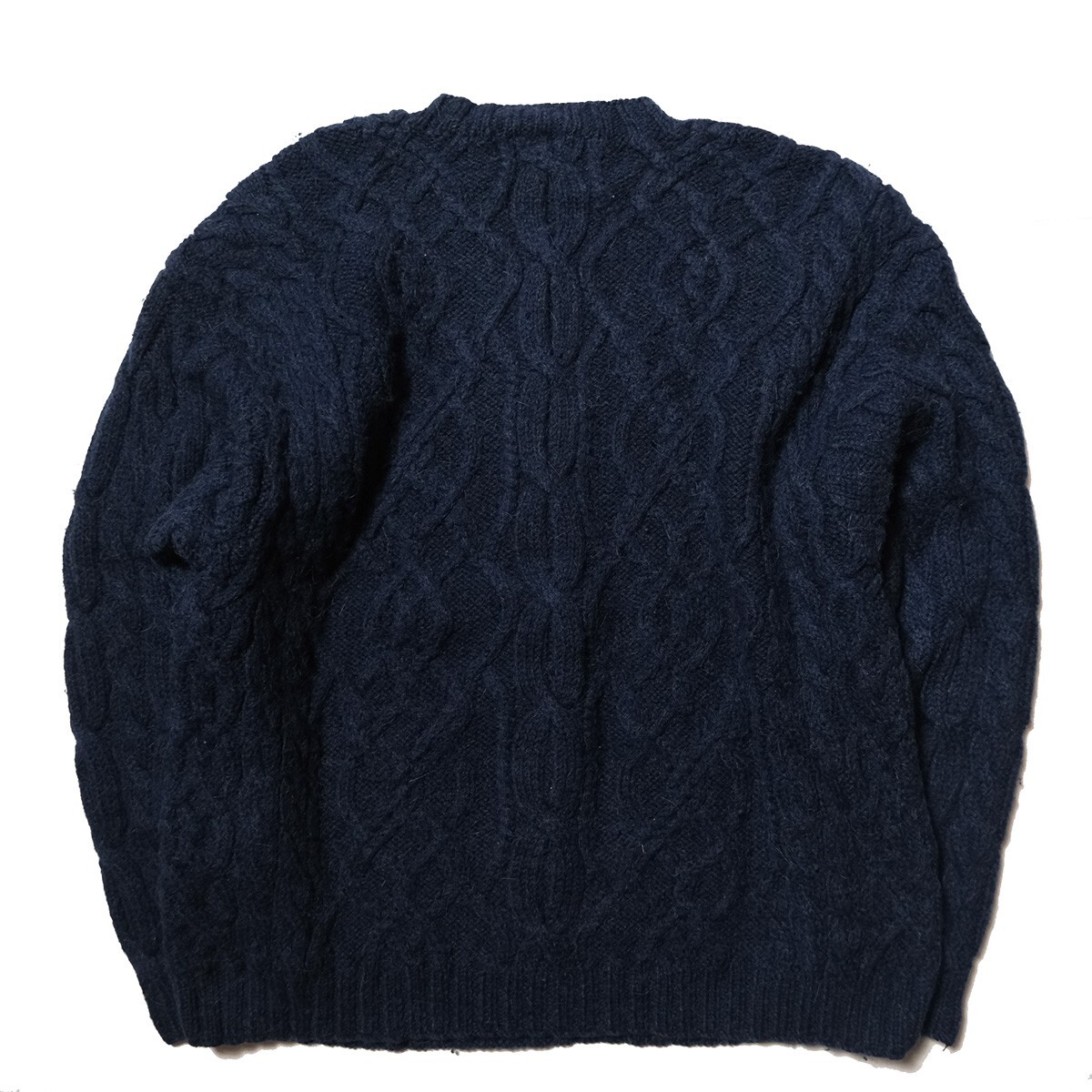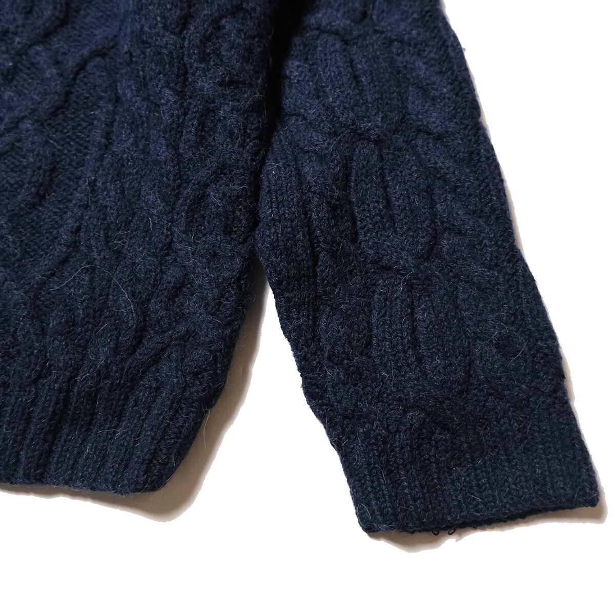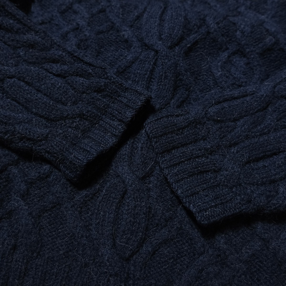 ケーブル編みが施されたフィッシャーマンスタイルのニットセーター