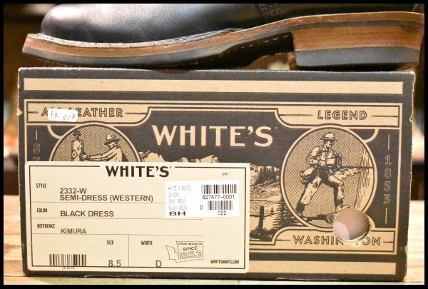 【8.5D 箱付 美品】WHITE'S ホワイツ 2332W セミドレス ブラックドレス 黒 レースアップ 編み上げ ビブラム269 ブーツ HOPESMORE