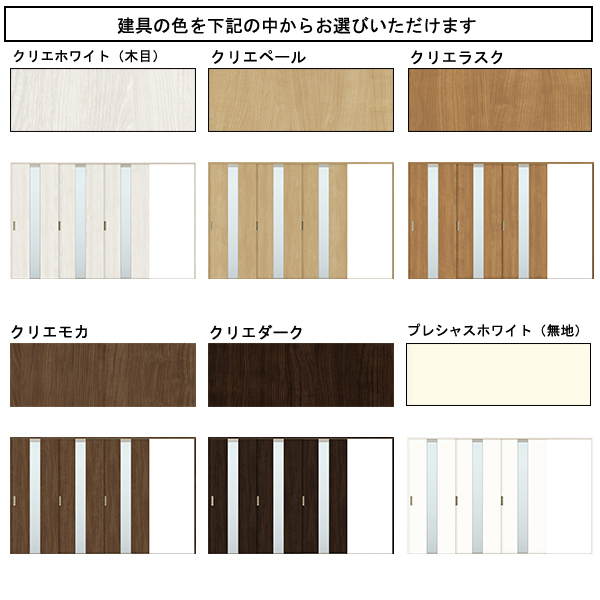 | 商品紹介 | ○ トステム (LIXIL) の室内建具 片引戸 3枚建 ラシッサS クリエ ○ デザインLGM ○ ノンケーシング ○ 枠の見込み:(210mmのみ) * 色をお選び頂けます * 引込勝手をお選び頂けます * 引手色をお選び頂けます * 沓摺りを4種類よりお選び頂けます。 * ガラスの種類をお選び頂けます。 * オプション・ソフトモーション(シングル又はダブル)を追加できます。 * オプション・バーハンドル(片側)に変更できます。 * 同時に複数セット、お買上げ頂けますと、送料の値引を致します。 違うサイズ(違う種類)との組合せでもOKです、是非お問合せ下さい。 |