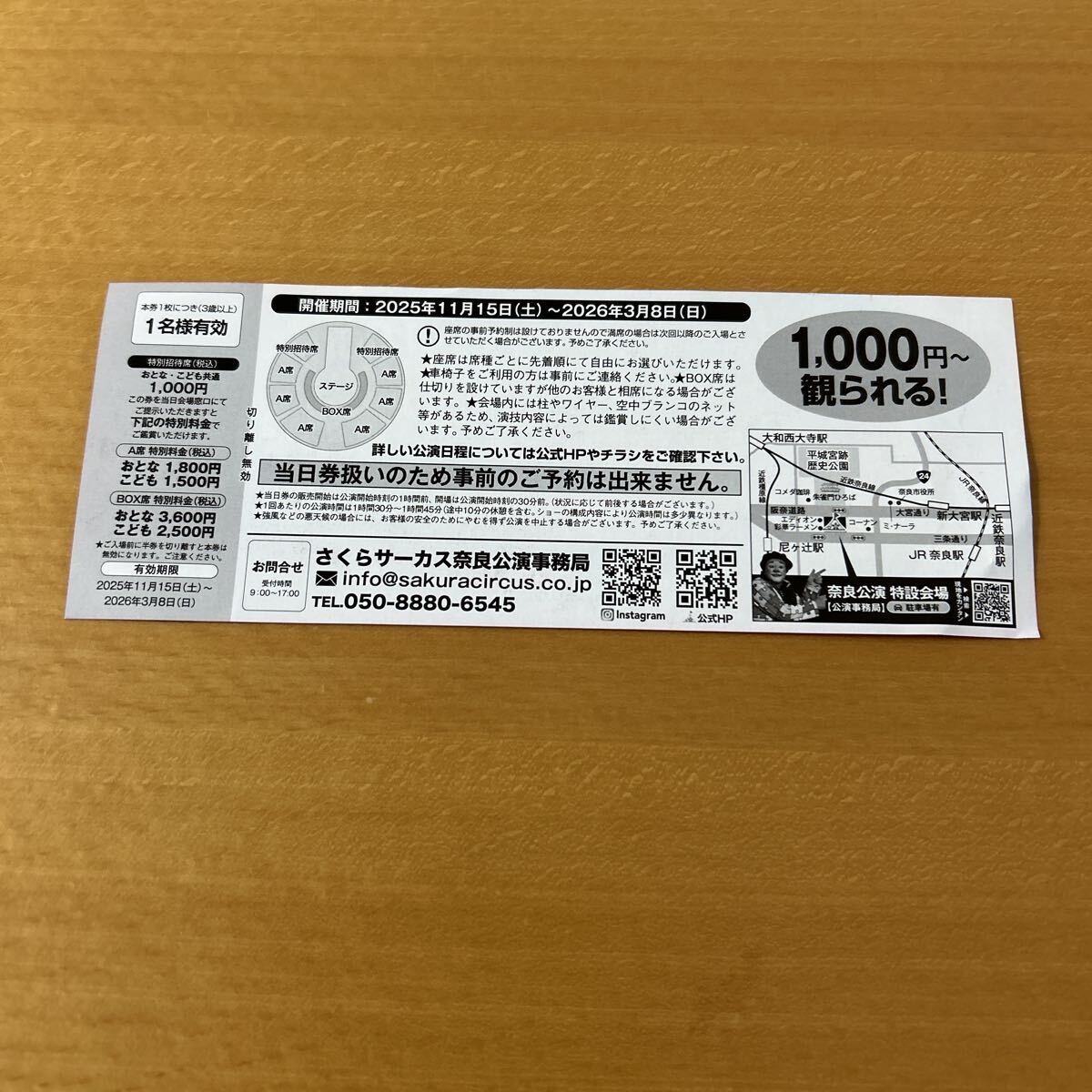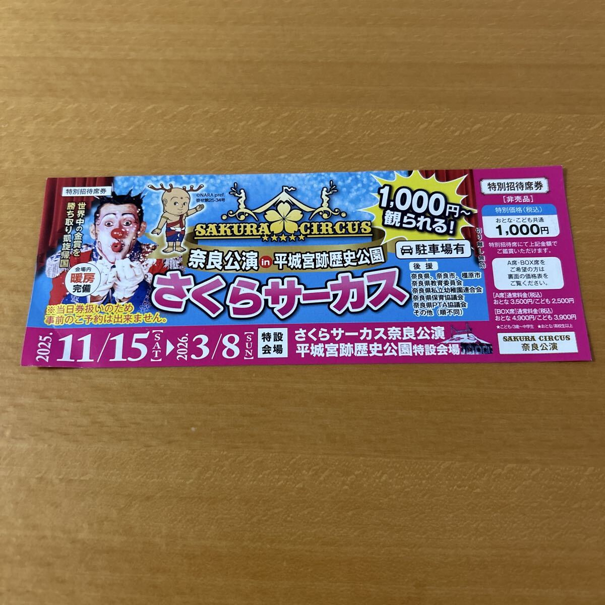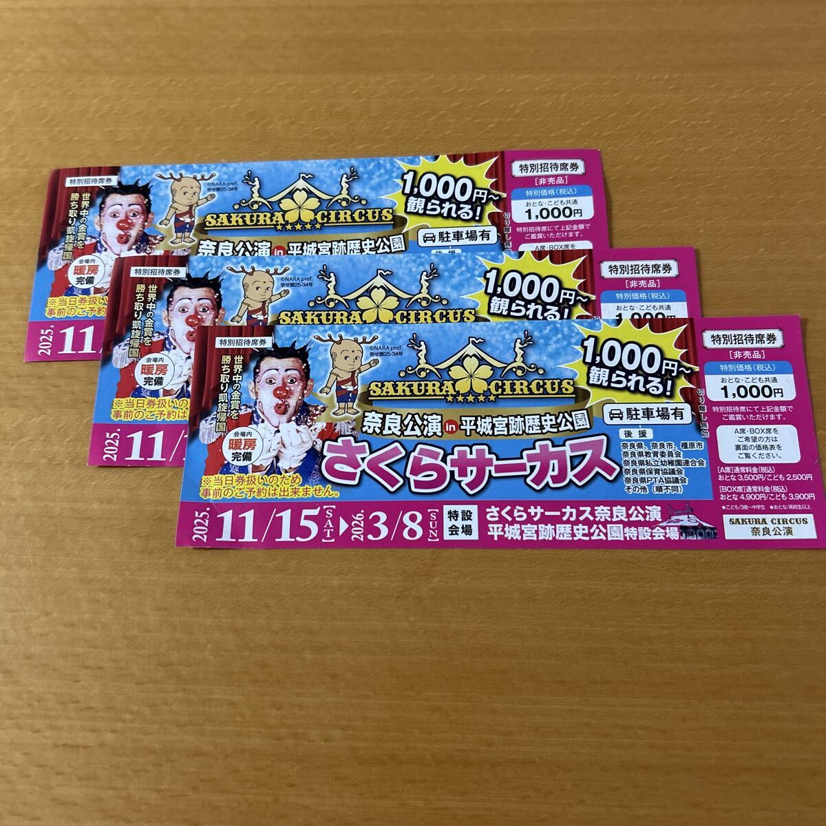 さくらサーカス 奈良公演 平城宮跡 特別招待席券 チケット 3枚