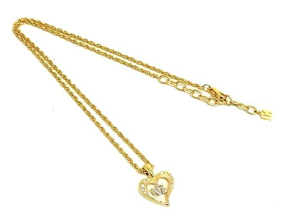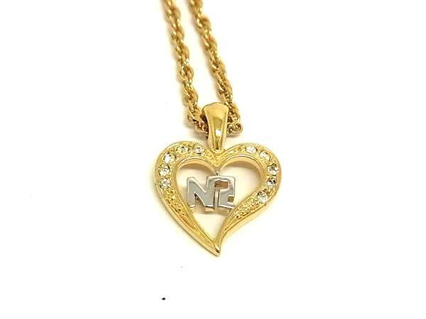 ■美品■ NINA RICCI ニナリッチ ハート ロゴ ラインストーン ネックレス ペンダント アクセサリー ゴールド系×シルバー系 DK4328