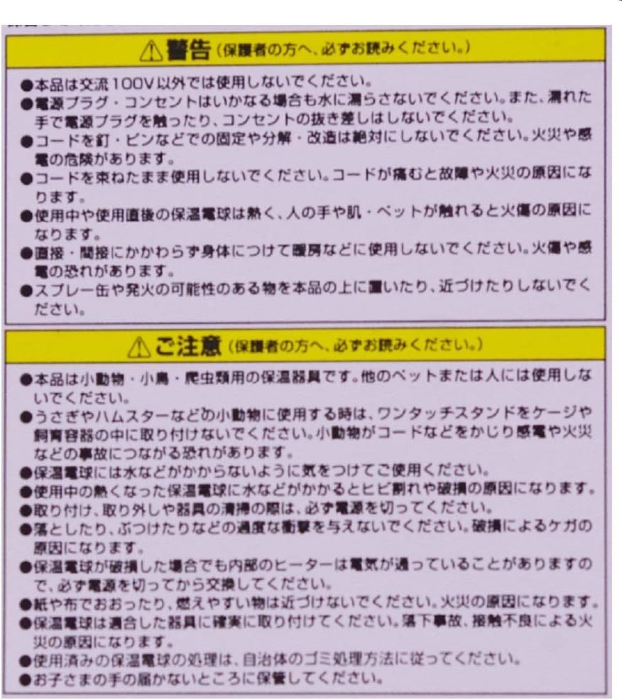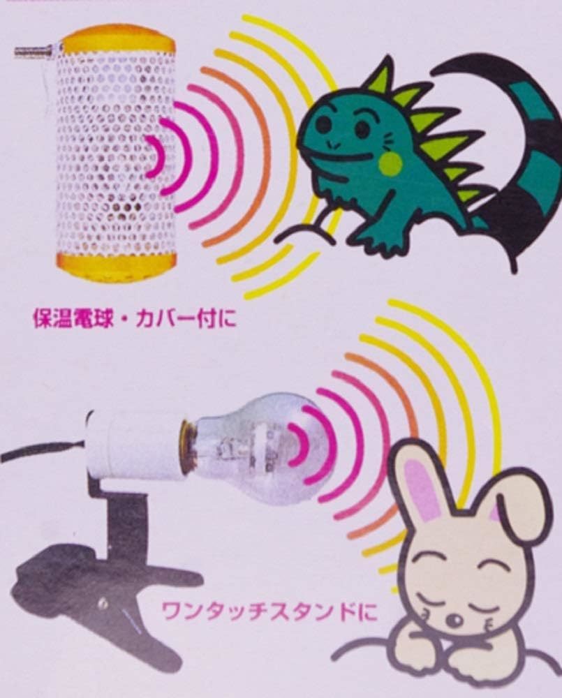 ・熱を放射して周囲の空気を暖める電球型のヒーターです。 ・ケージや飼育容器全体をソフトに暖め、寒い季節も安心してペットを飼育できます。 ・電球の表面には特殊コーティングが施されており、割れにくく、破損時の飛散を防ぎます。 ・普通の電球のようにカンタンに取り付けることができます。