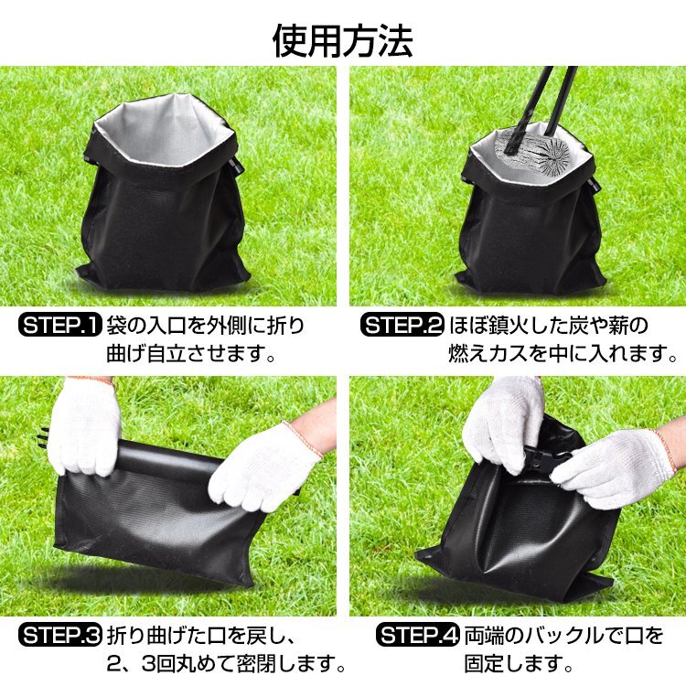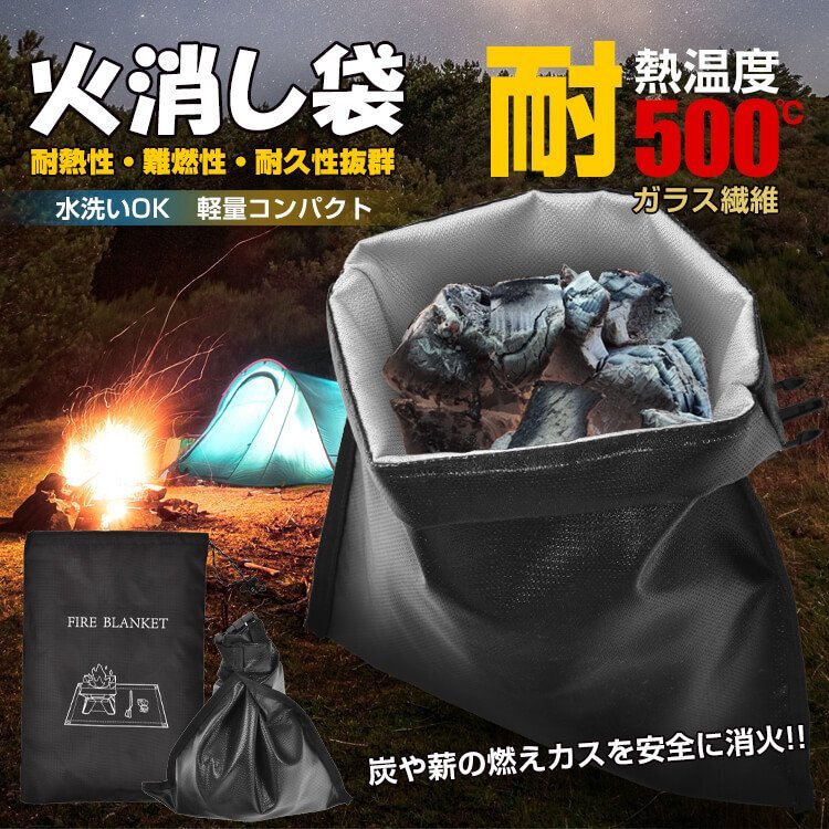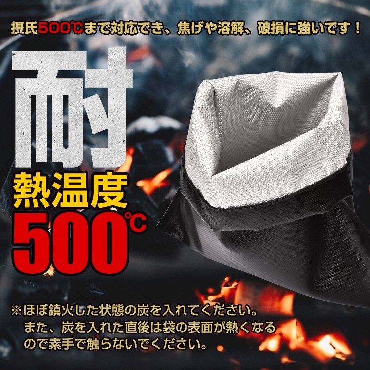 送料無料 火消し袋 キャンプ 炭袋 炭処理袋 炭入れ コンパクト 炭携帯 使用済み炭処理 炭 完全鎮火 促す 耐熱性 難燃性 簡単収納 安全od598