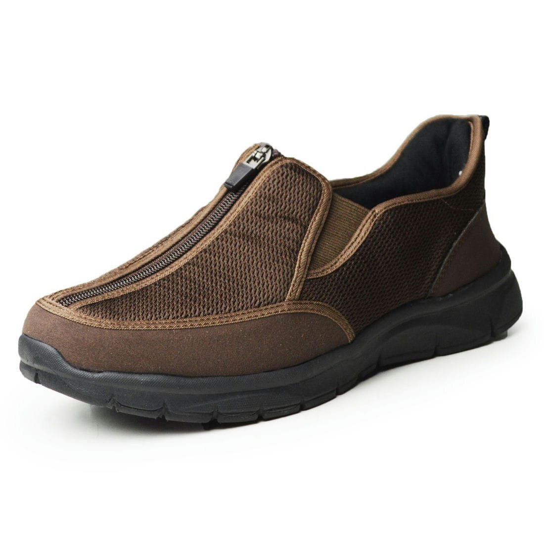 新品■26.5cm 軽量 スリッポン 幅広 4EEEE メディカルシューズ ナースシューズ 着脱簡単 メンズ 防滑 靴 フロントジップ 黒 茶【エコ配送】