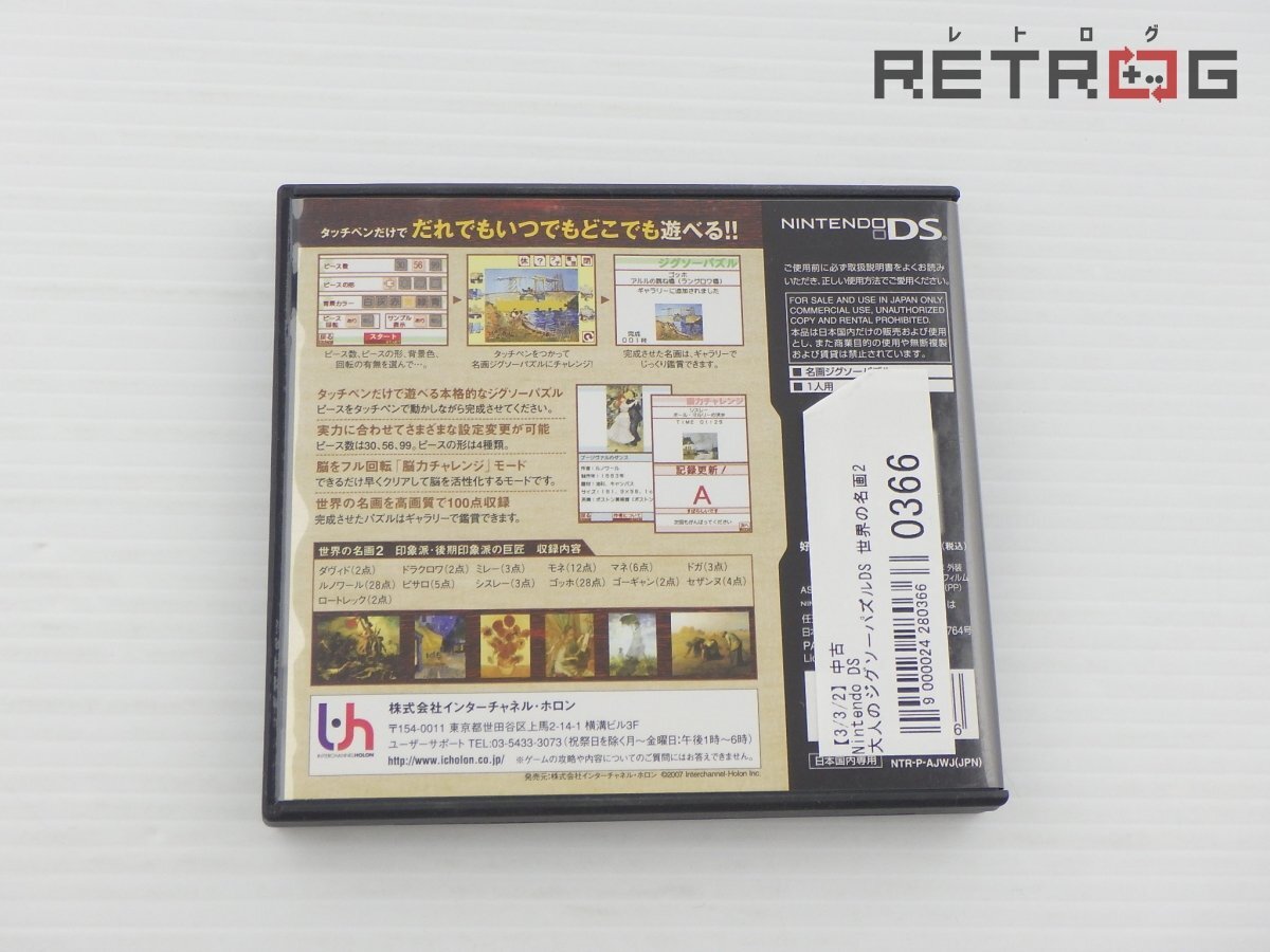 商品名 【箱付き】大人のジグソーパズルDS 世界の名画2 ニンテンドーDS
