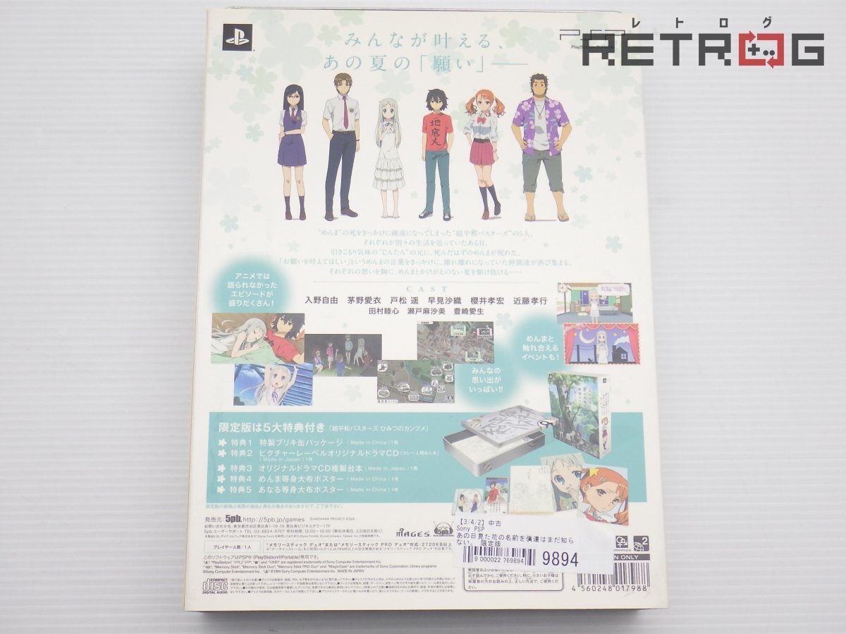 商品名 【箱付き】あの日見た花の名前を僕達はまだ知らない。 限定版 PSP