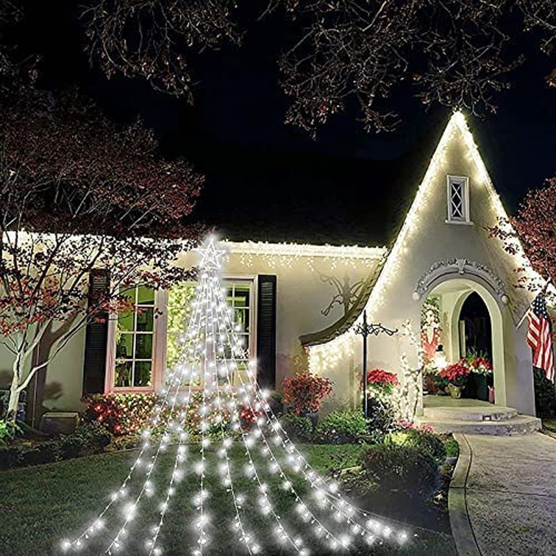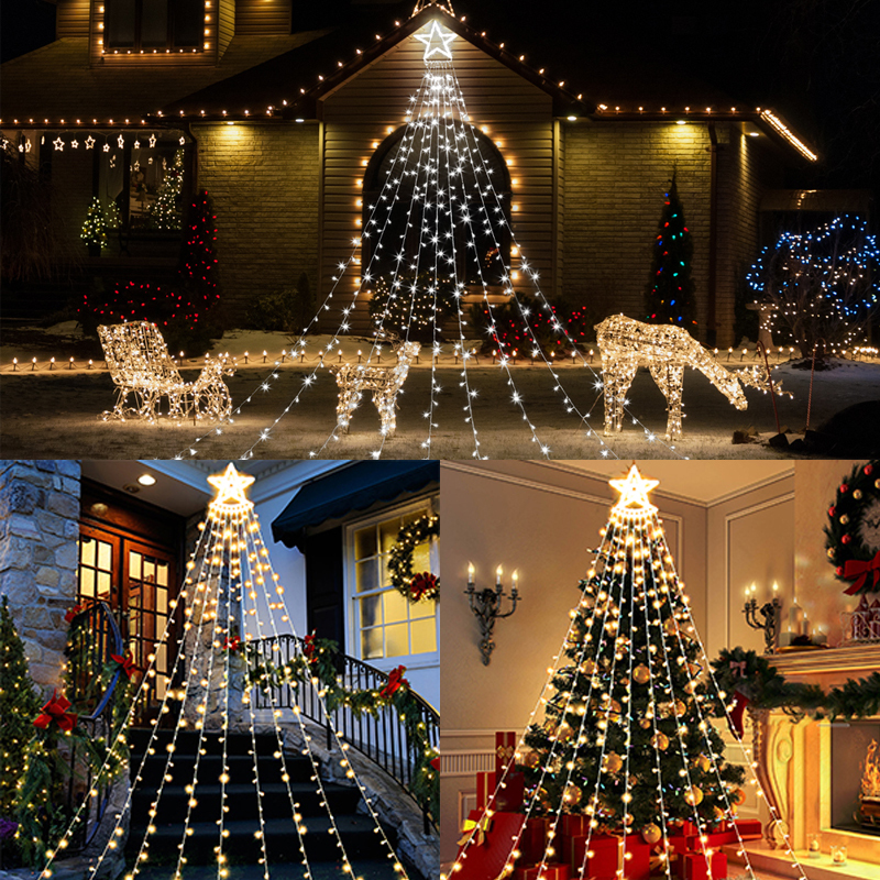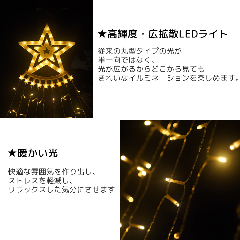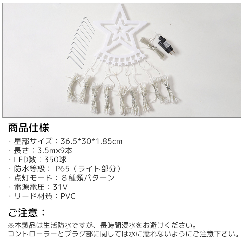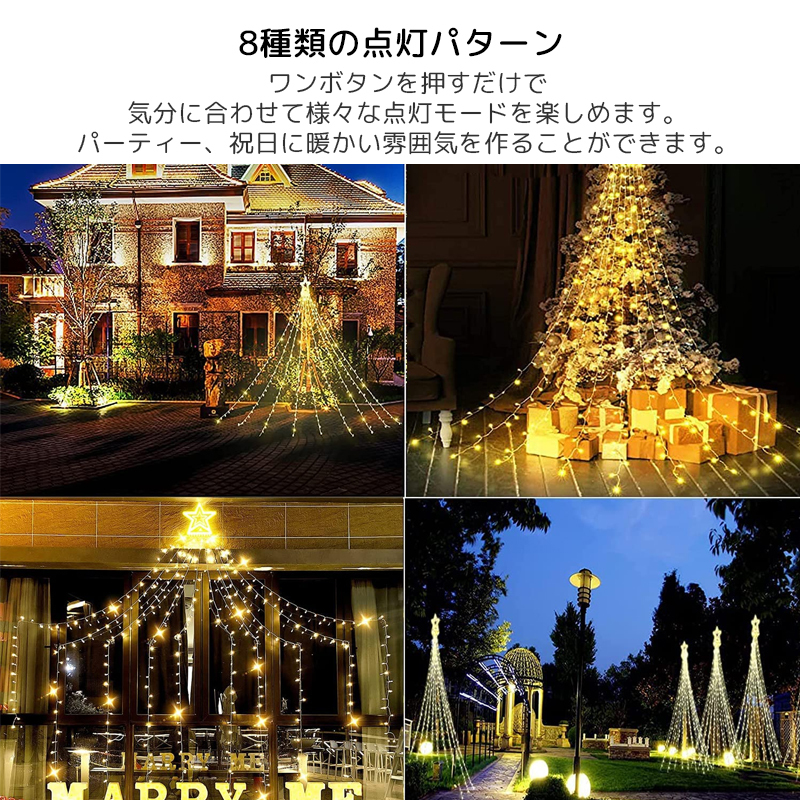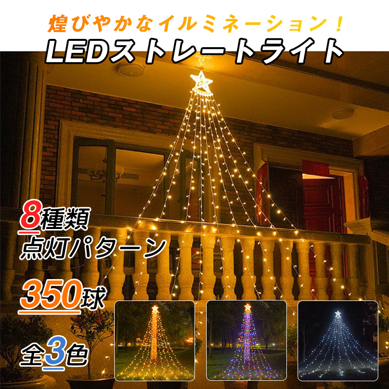 イルミネーションライト クリスマス 屋内 屋外 LEDライト 350球 8種点灯モード 星型モチーフ 電源式 防水 部屋 壁 祝日 庭 3色選べる