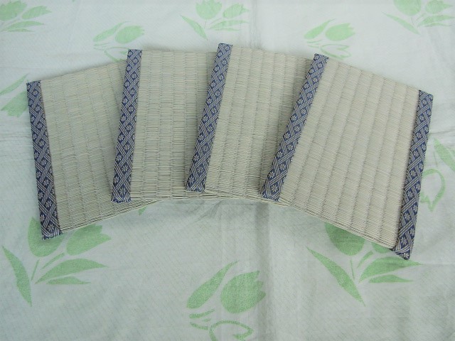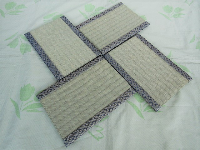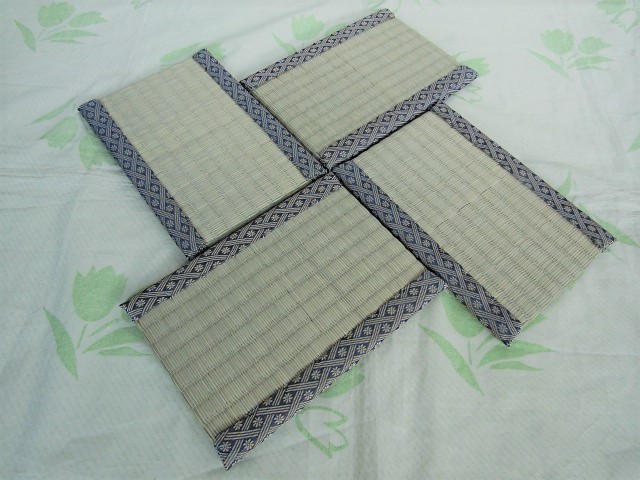 | ★商品説明★ | *手作りミニ畳です。一枚当たりのサイズ21.3cm×15.3cm×1cm(A5サイズ) *4枚セット販売です。 *ミシンで縫った物やタッカービス止めの物とは違い、畳職人さんが昔ながらの技法でひと針ひと針、畳針と畳糸で作った匠の逸品です。 *畳屋さんに頼んでも、機械化になった昨今、この様な商品がこの様な価格での入手は困難です。 *即決ですので早い者勝ちです。 *天然い草だけを使用し、しっかりとした作りです。 *芯には、い草ござを縦方向に入れて、3枚張りにして、強度を付け縫製しています。 *い草の良い香りがします。 *写真3枚目は裏面です。 *商品の良し悪しは、評価覧でご判断下さい。 *他にも出品しています。御覧下さい。 |