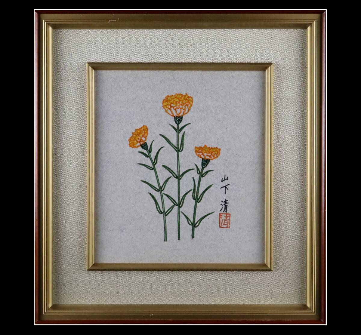 放浪画家 山下清 「カーネーション」 色ペン画 色紙 額装 現代巨匠 真作保証