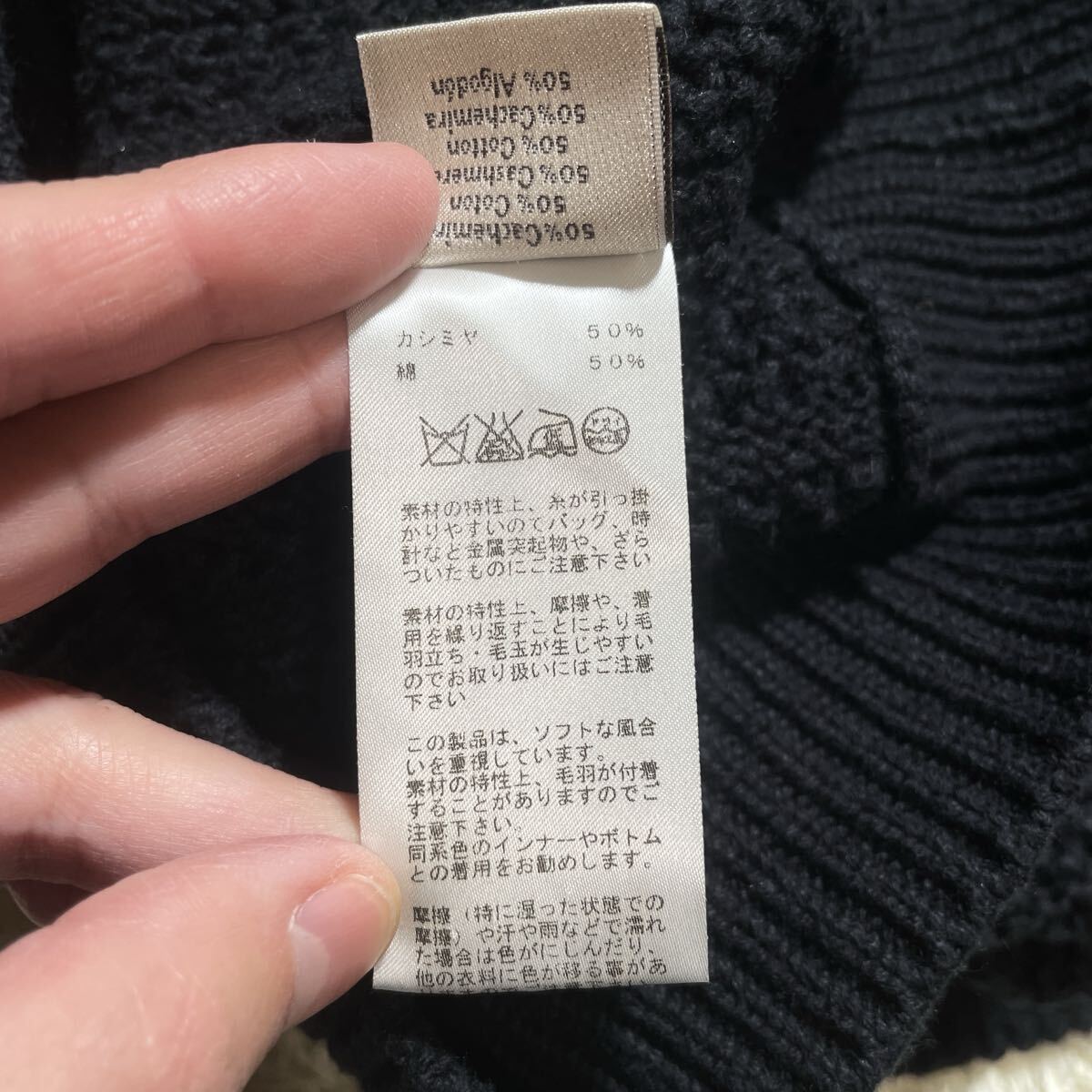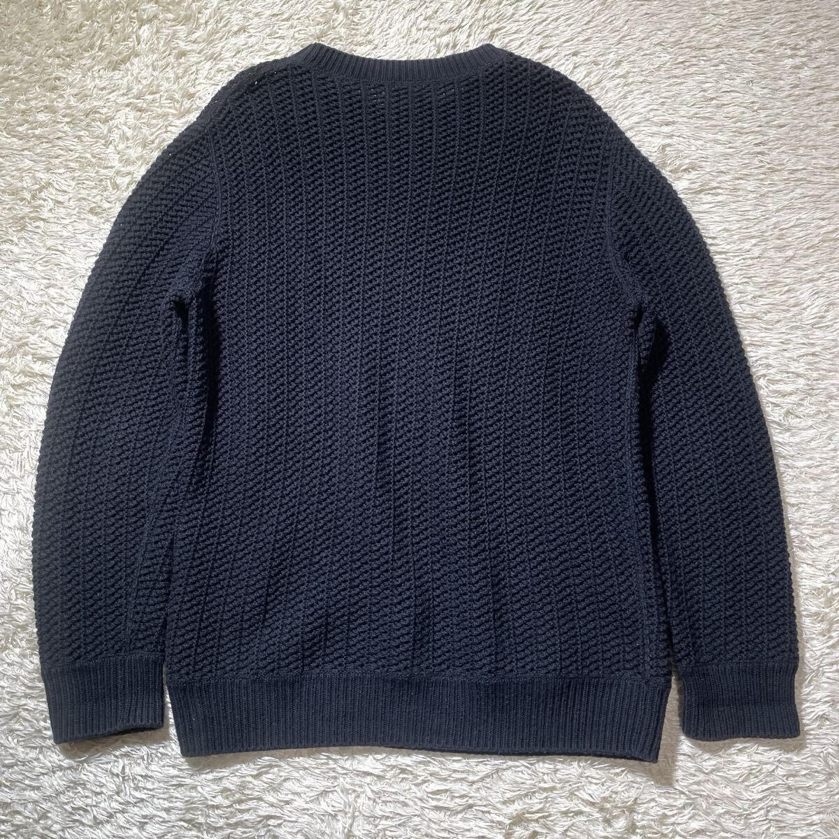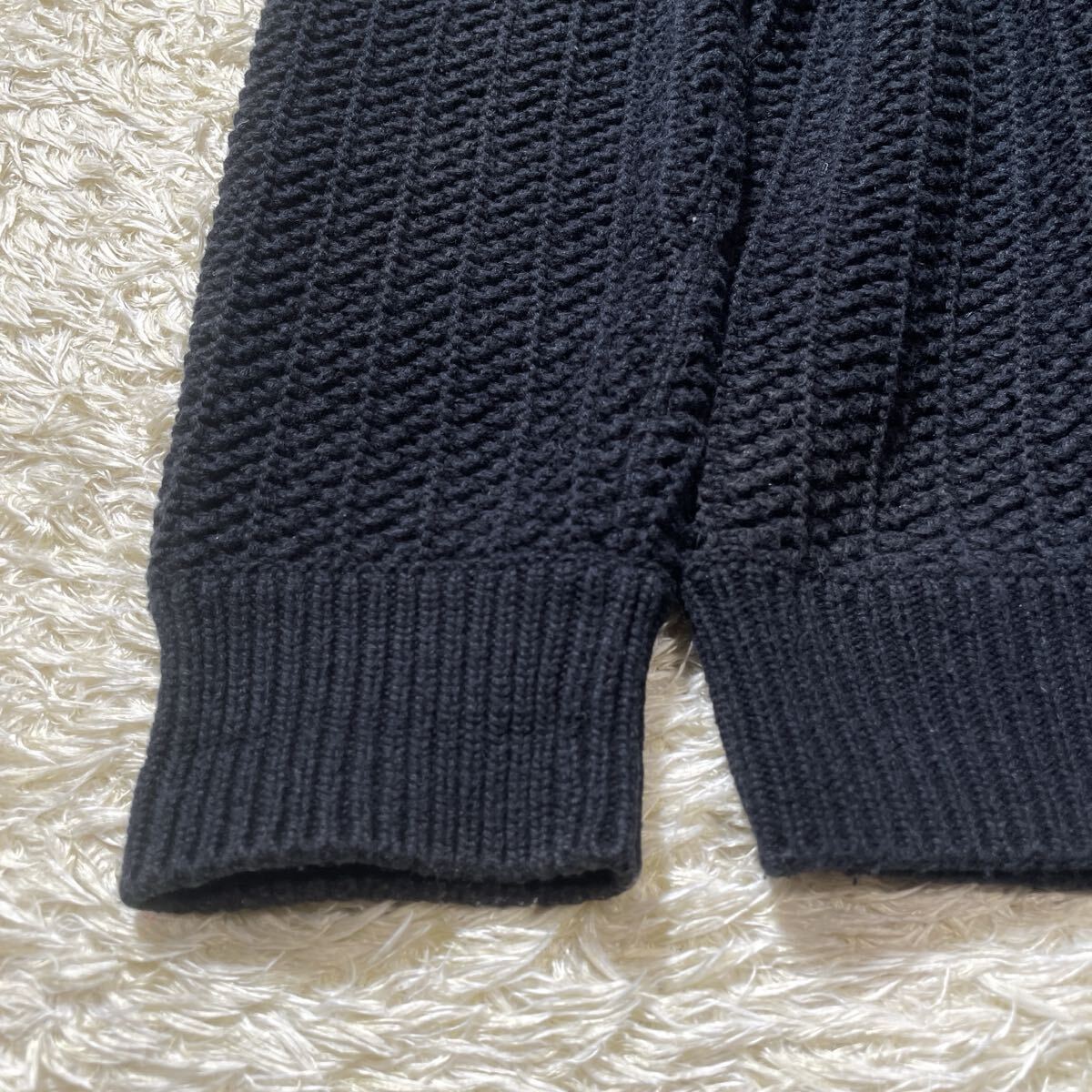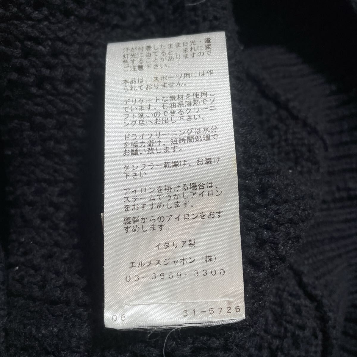 美品 HERMES エルメス 2023年モデル カシミヤ コットン 編み込み ローゲージ ニット セーター トップス 近年品 メンズ サイズM ブラック