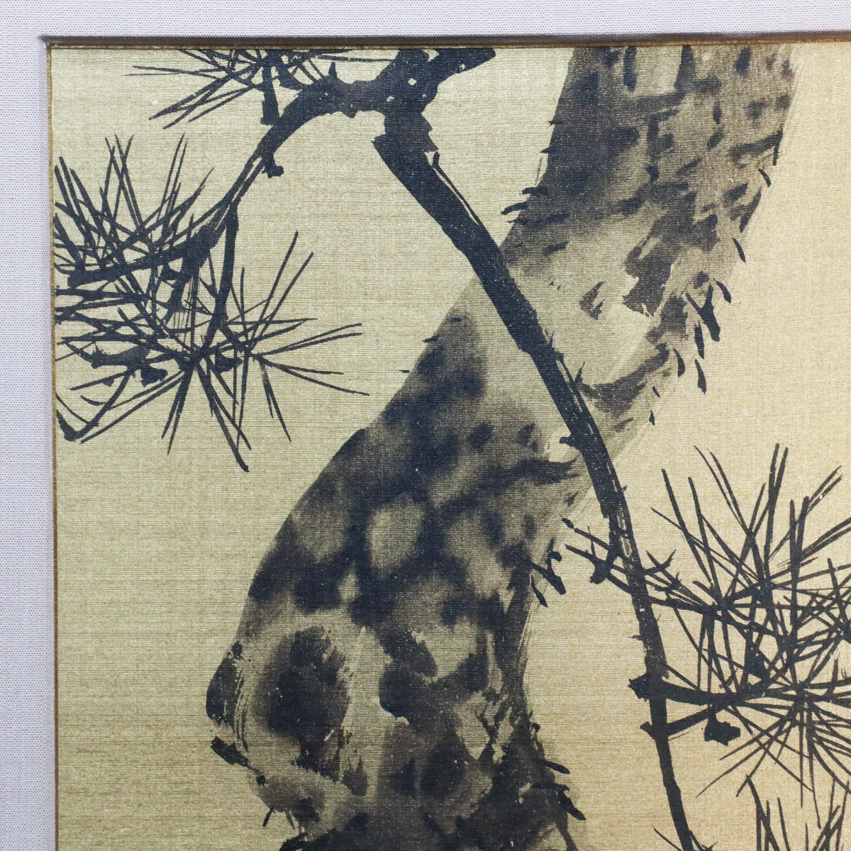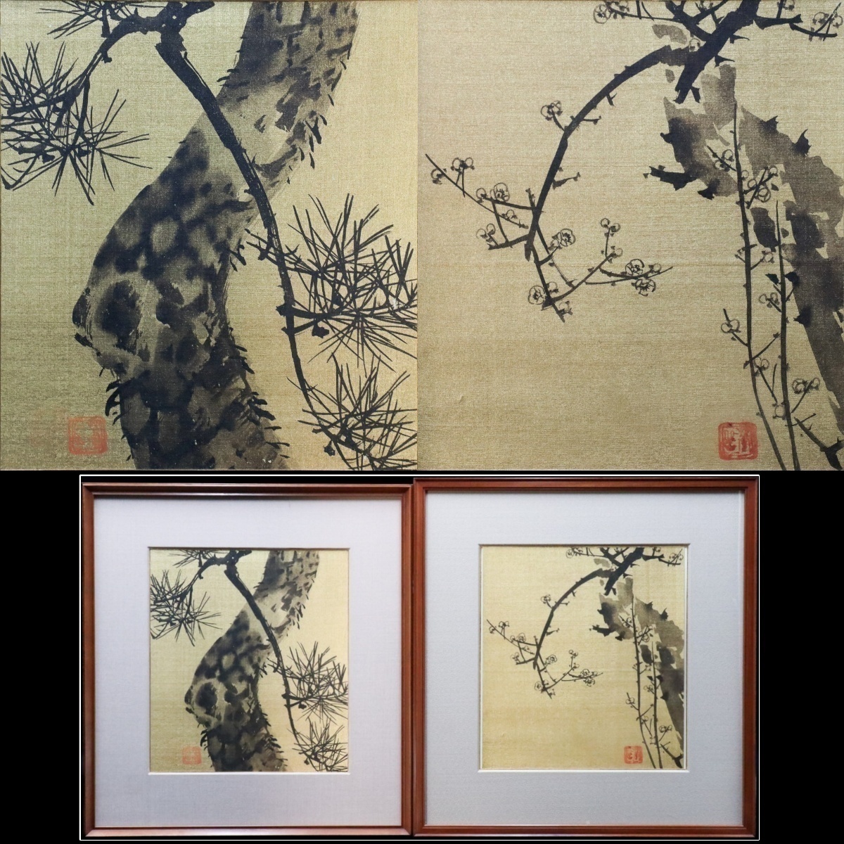 【宙】真作保証 村上華岳「松図」「梅図」絹本 日本画 仁科一恵堂額装 対額 落款有 名家蔵出品 水墨画構図 国画創作協会設立 [D]9T26.hq.D