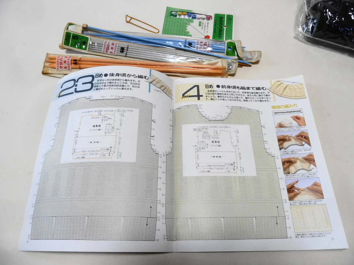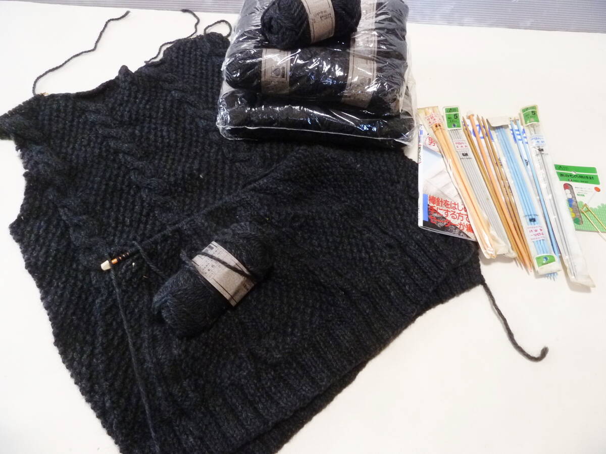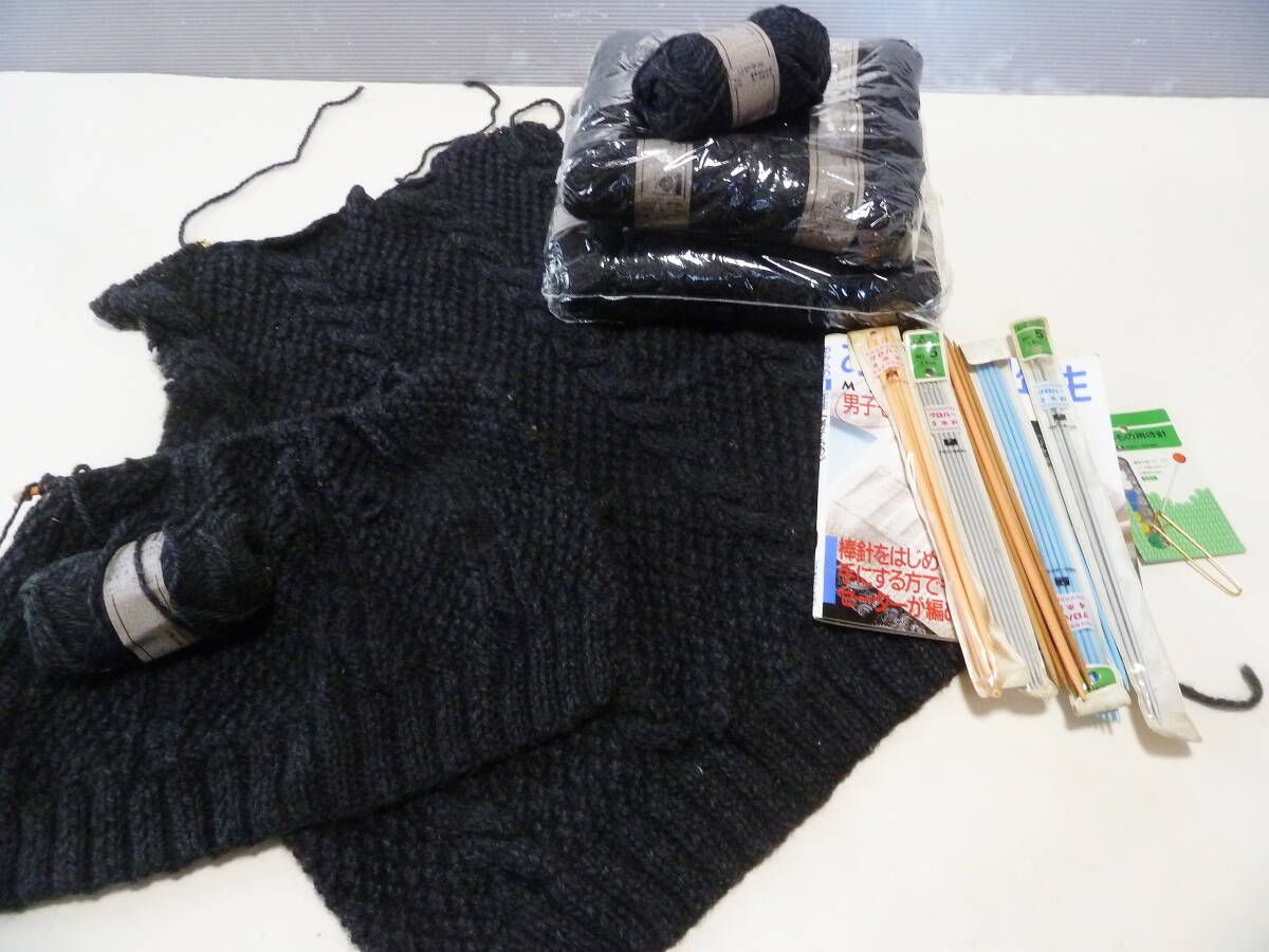 ♪純毛毛糸 未使用16玉 使いかけ2玉+編みかけのセーター 編み針 棒針 編み棒 編み物の本 いろいろまとめて