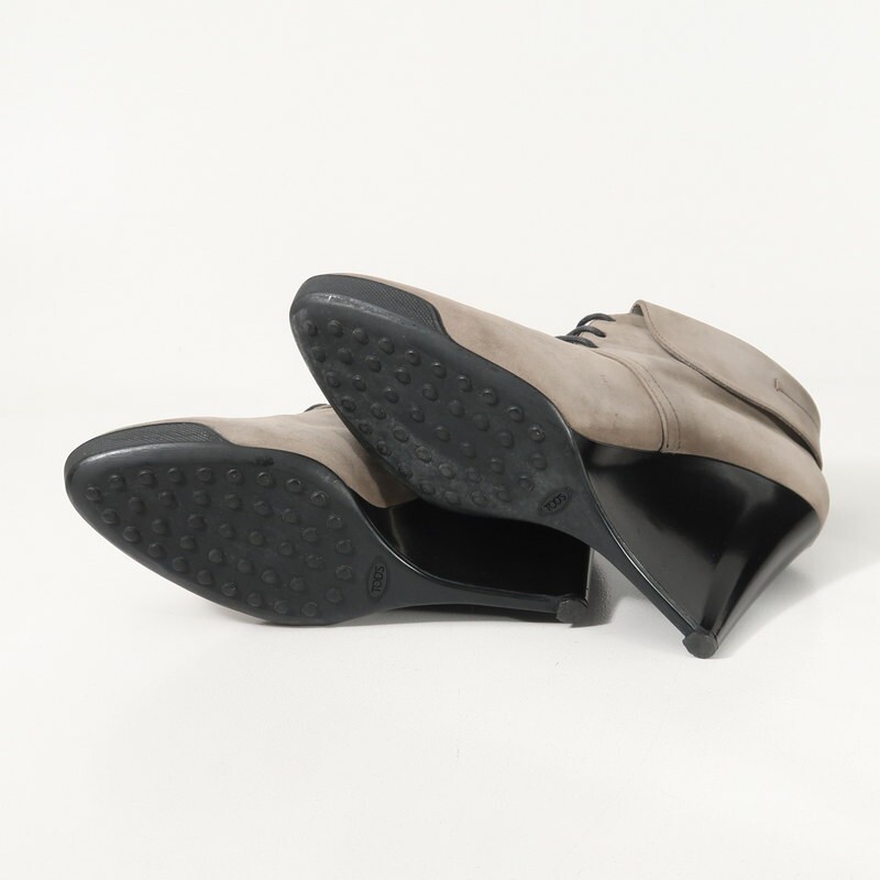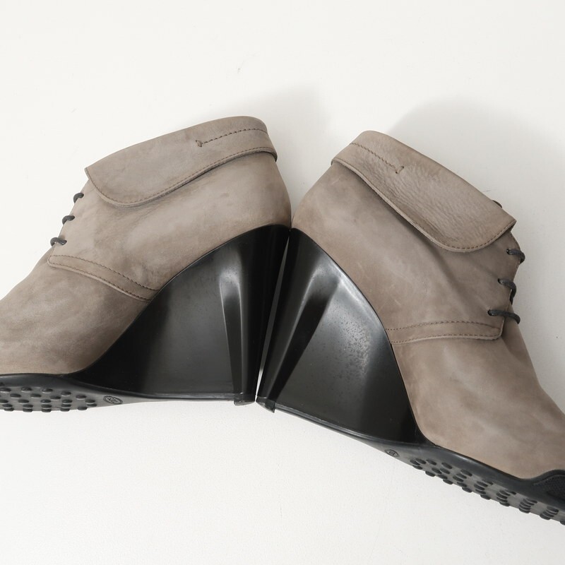 | XXXX▼イタリア製*トッズ TOD'S*スエードレザー レースアップ ウェッジソール アンクルブーツ ブーティ 39(25.0cm相当) 靴 グレー系 | |||