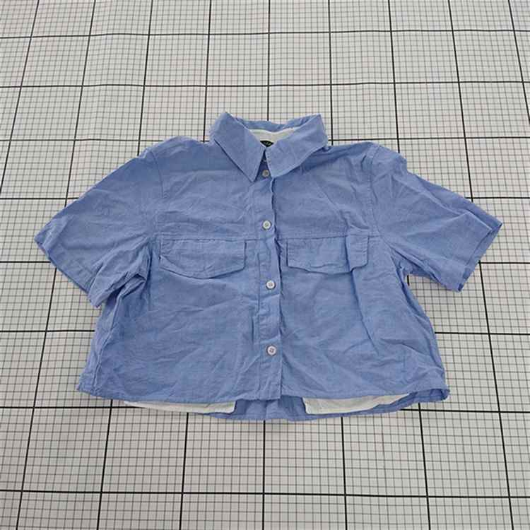 ◇ 【ザラ ZARA】コットン 半袖シャツ ブルー系 Sサイズ レディース E
