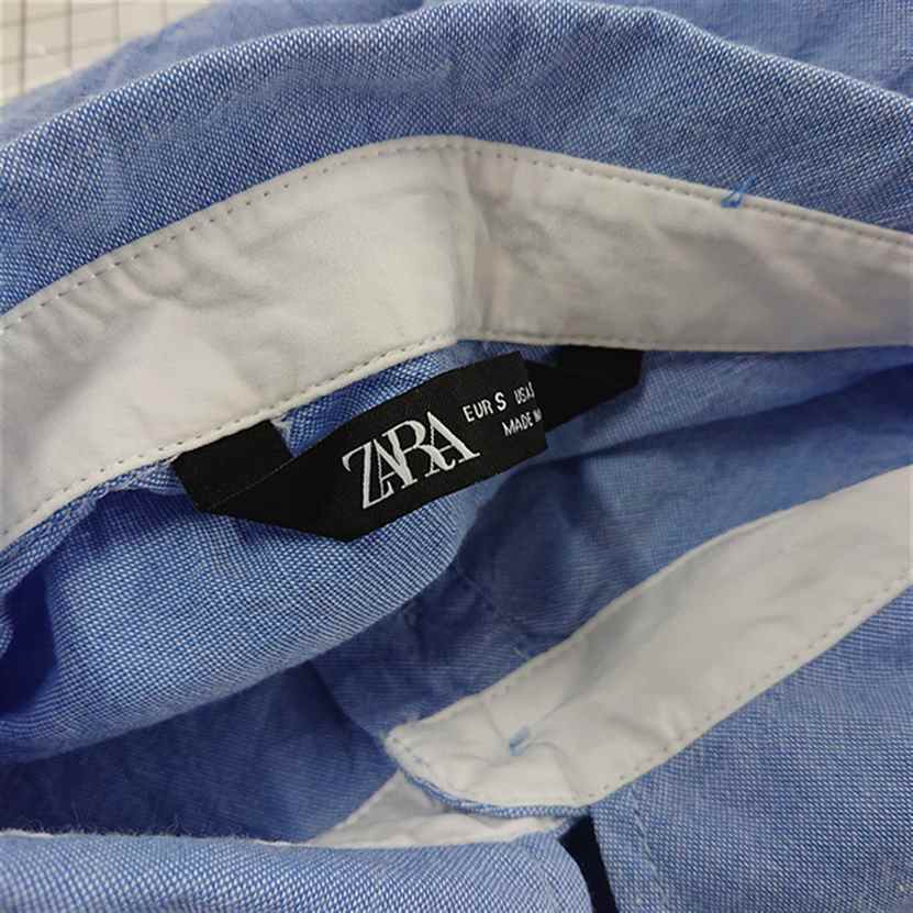 【ザラ ZARA】コットン 半袖シャツ ブルー系 Sサイズ レディース