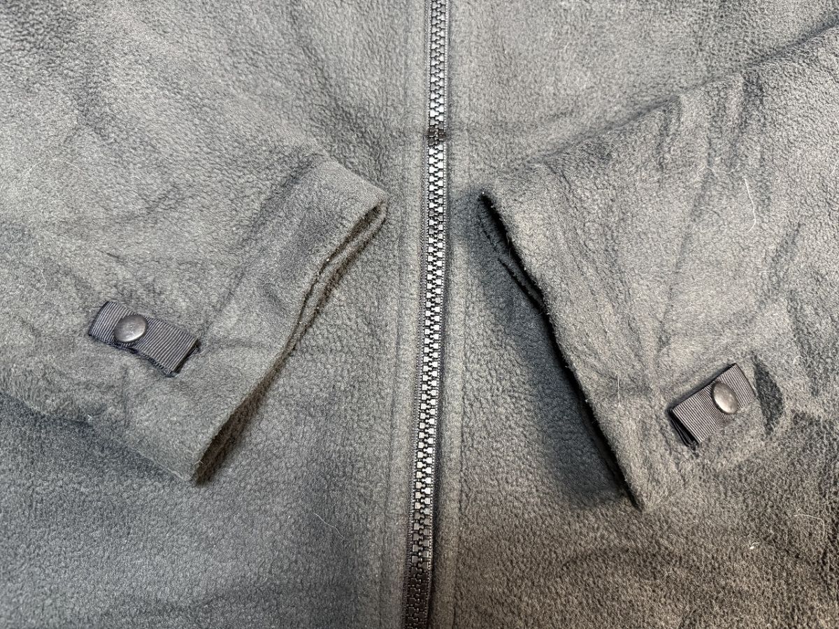 フリースジャケット ロゴ刺繍 スタンドカラー フルジップ ブラック黒【M】