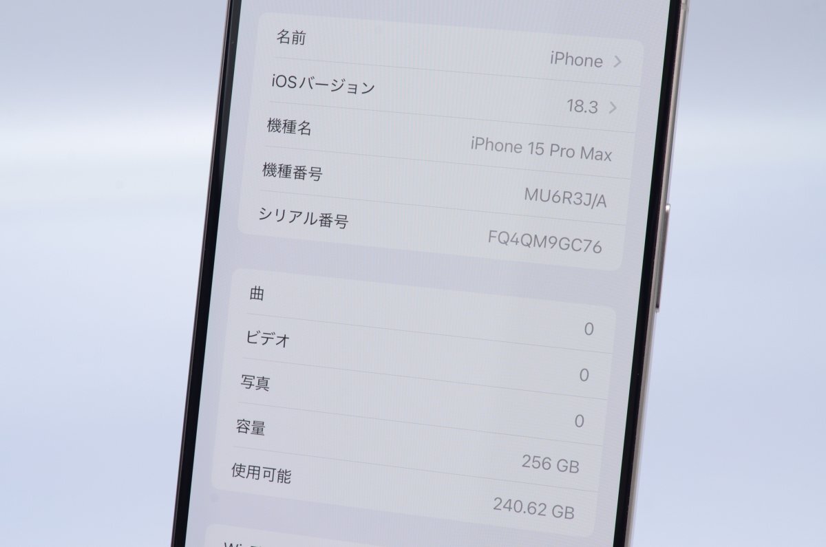 ■機種 : iPhone15 Pro Max 256GB ナチュラルチタニウム A3105 MU6R3J/A