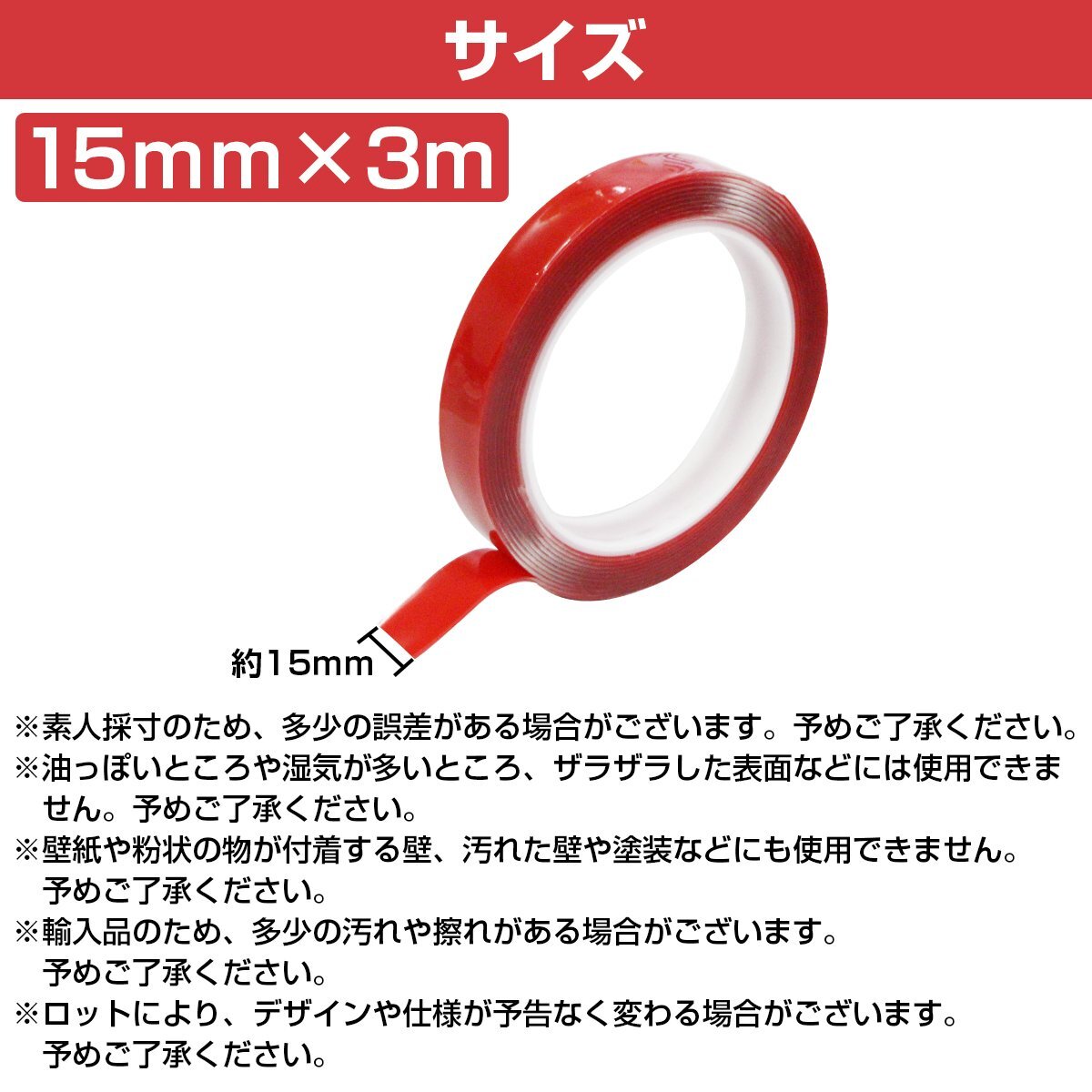 『15mm×3m』強力両面テープ 透明 接着 伸縮性 粘着 貼り付け ガラス 金属 タイル 固定 補強 便利 家具 車 内装 手芸 工作 DIY 多用途