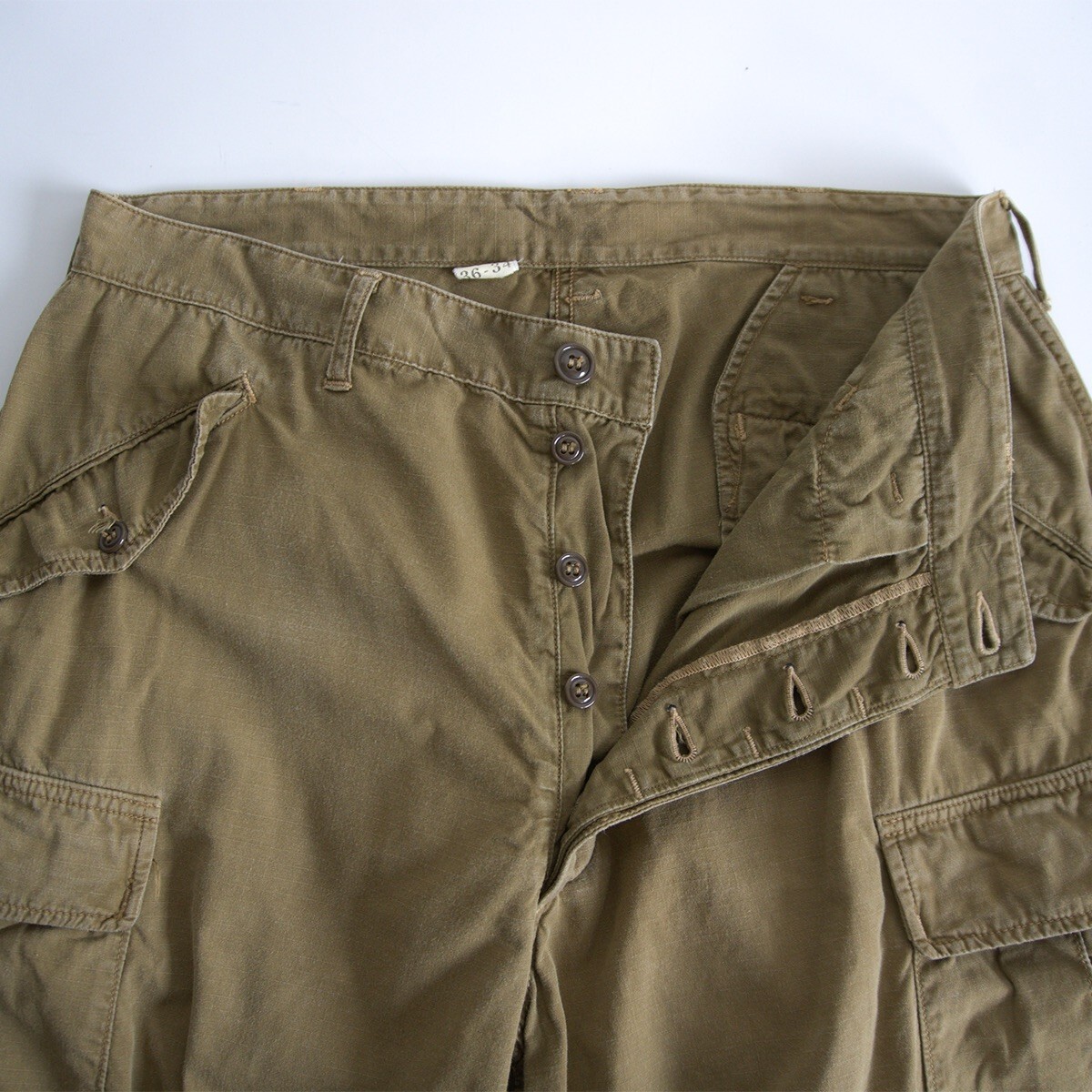 1960年代アメリカ軍で使用されていた6ポケットのパンツを民間用としてアレンジしたものになります。着用や洗いを繰り返していくと経年変化を楽しめる1本となっております。