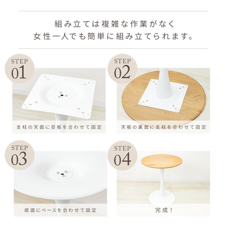 | シンプルな形が美しい丸型ダイニングテーブル! シンプルだからこそ、どんなお部屋にも馴染みます。 ワンルームにもオススメ! お家にいながらおしゃれなカフェにいるかのような贅沢な時間を味わうことができます♪ 一本脚なので足元のスペースが広々。リラックスした姿勢で過ごせます。 耐久性にも優れ、頑丈なスチール脚はしっかりとテーブルを支えます。 脚裏には、滑り止めパーツ付き。床を傷つけることなく移動できます。 組立簡単!女性一人でも簡単に組み立てられます♪。 ■商品コード:FIA60NT ■商品仕様 カラー:木目ナチュラル サイズ:(約)直径60cm×高さ74cm 重さ:(約)8.7kg 耐荷重:(約)130kg 材質:MDF、鉄、PE 他 ■注意事項 ・直射日光又はストーブ等の熱は避けてご使用ください。 ・組立て説明書をよくお読みの上、正しく組立ててください。 ・加熱した鍋、湯沸かし器などを直接置かないでください。 ・商品は、モニターによって色合いが異なって見える場合があります。 ・仕様・デザインは改良のため予告なく変更することがあります。 ■保障期間 7日間 ※商品到着後7日以内の初期不良・破損のみご対応させていただきます。 【新品未使用品です】 ▼検索ワード ダイニングテーブル 丸 北欧 テーブル おしゃれ カフェ ダイニング テーブル 丸テーブル 木脚 円形 コーヒーテーブル カフェテーブル 食卓テーブル デザイナーズ モダン リビング 家具 かわいい 2人 2人用 2人掛け 木製 木製テーブル 新生活 一人暮らし |