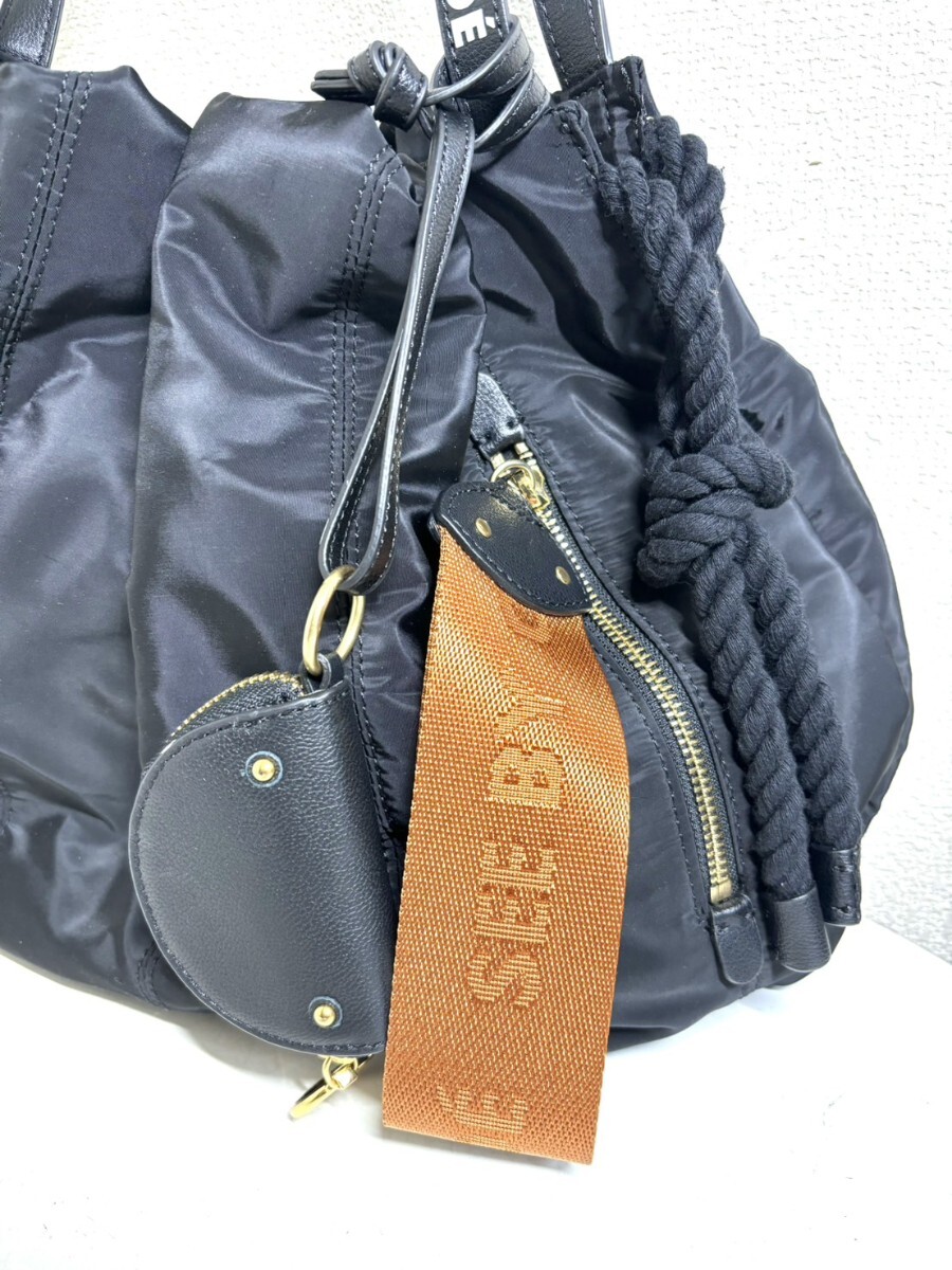 【中古美品】 SEE BY CHLOE シーバイクロエ バック ナイロン/レザー ブラック ゴールド金具 コインケース付き
