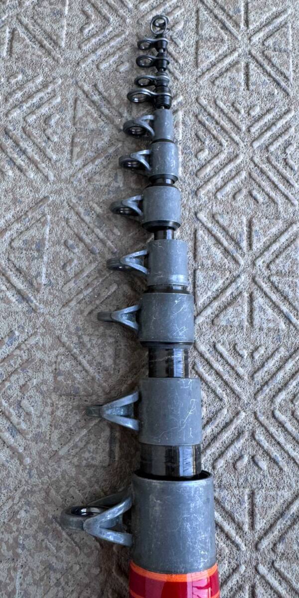 | 商品説明 | 当方のオークションをご覧いただきありがとうございます。 入札後24時間以内に連絡、入金が出来ない方は入札をお断りしております。 日本語が出来ない方やオークション代行『業者』の入札をお断りしております。 上記については落札者都合で取引を中止します。 入札される前に以下の説明文に、『必ず』、目を通して下さい。 商品は、 NFT ボロン翔振出石鯛525です。 ●商品詳細 使用材料:ボロン繊維。8.6%、カーボン繊維86.6%、グラス繊維4.8% 標準全長:5.25m 先径:1.6mm 元径:25.7mm 標準自重:690g 仕舞寸法:131.0cm 継数:5本 錘負荷:35号 オールSICガイド メーカー希望小売価格96,800円(税込) ●付属品 キャメックスオリジナル石突(紫檀に本うるし塗り仕上げ)、富士工業トップカバー ●サブロッドとして携行して釣りに使用せず、その後自宅暗所で保管していました。当然のことながら穂先折れや詰め、置き傷、ガイドの錆はありません。 中古品と言うことをご理解の上ご入札ください。 ブランクには傷は無く、トップコートも光沢があります。 純正石突きは付属しません。 ※画像の立て線は後ろの映り込みです。 ※商品は専用ダンボールに竿を緩衝材で巻いて発送(着払い)となります。 ■その他出品商品■ | |