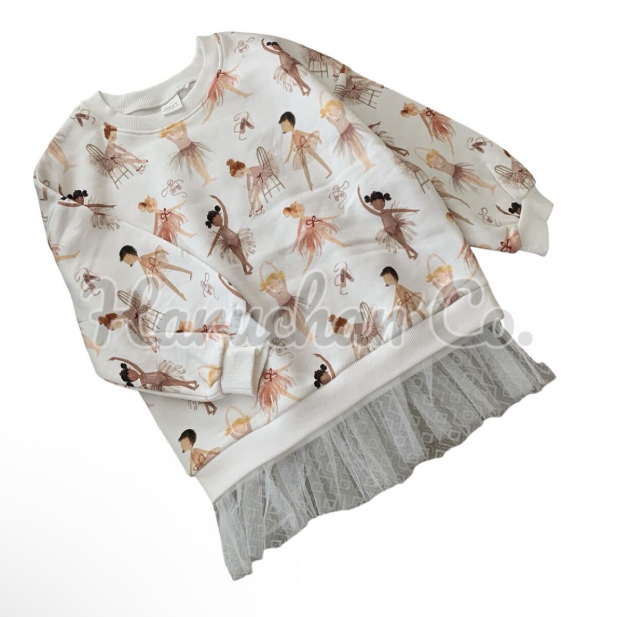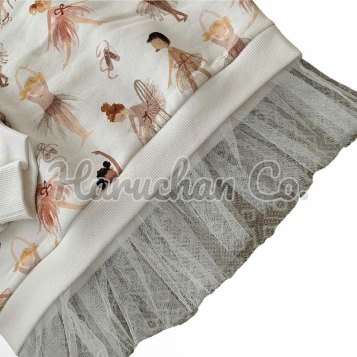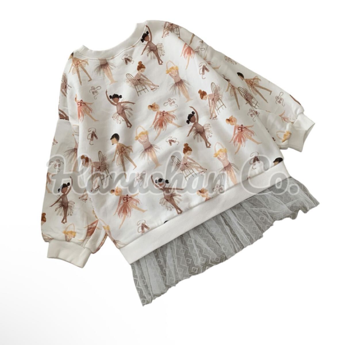 バレエのレッスンをしている小さなバレリーナ達がキュートな裏起毛の裾チュールスウェットチュニックと