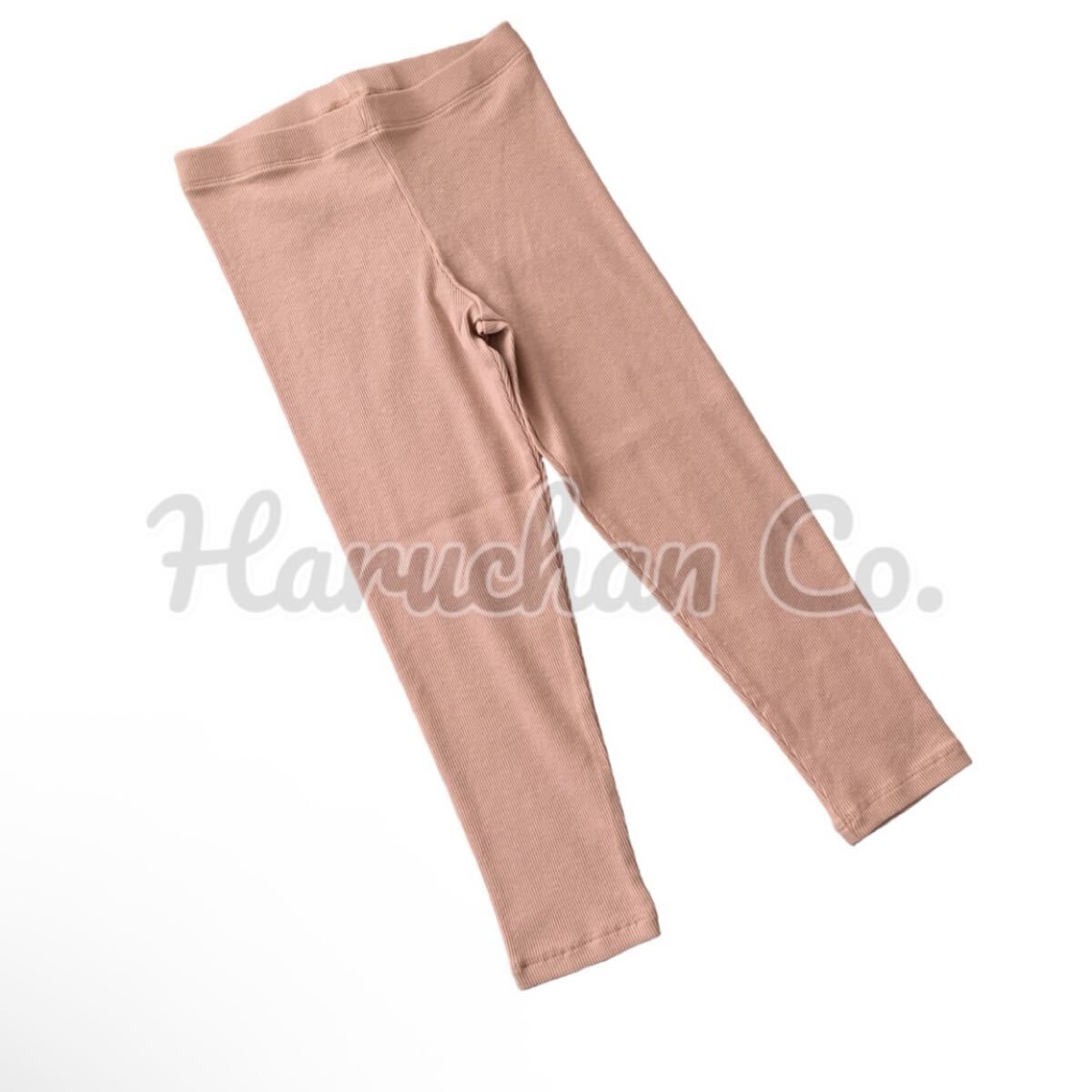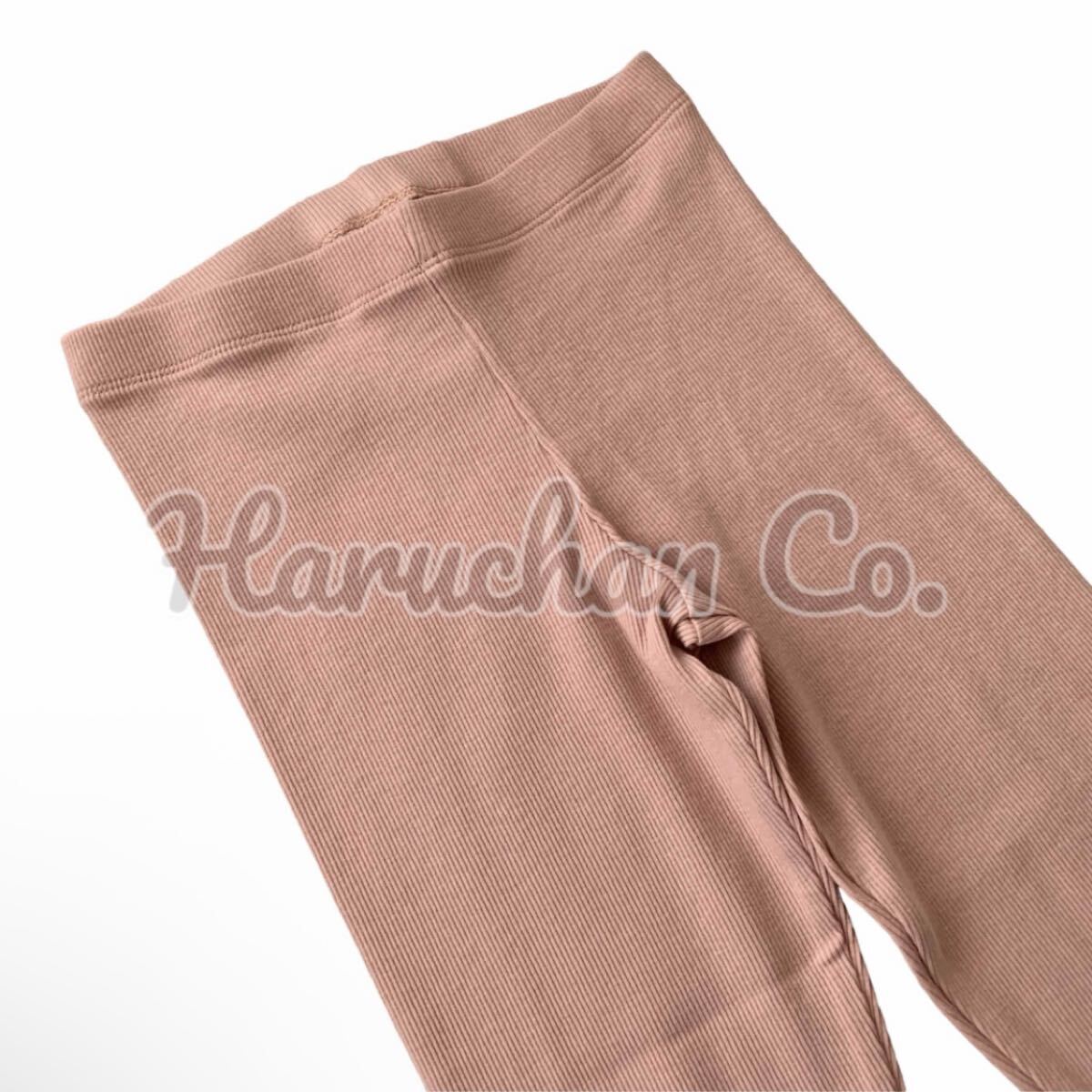 ピンクベージュのリブレギンスのセットアップ