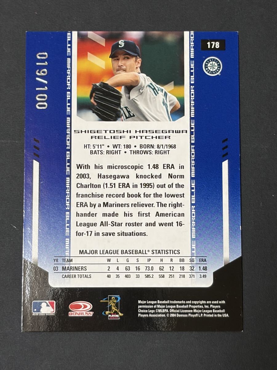 2004 Donruss Leaf Certified MIRROR BLUE SHIGETOSHI HASEGAWA autograph 長谷川滋利 サイン 100枚限定 auto