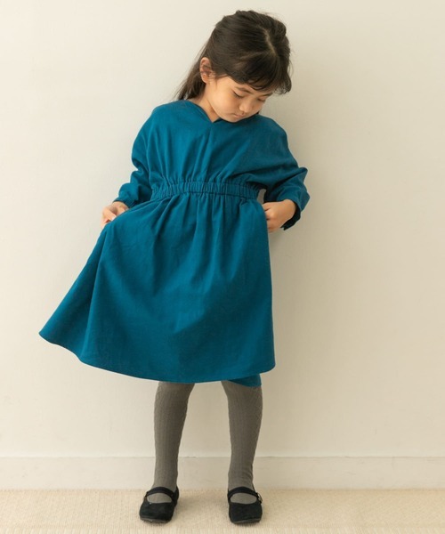 キーワード:ワンピース キッズ 子供服 フレア ミモレ丈 七分袖 五分袖 無地