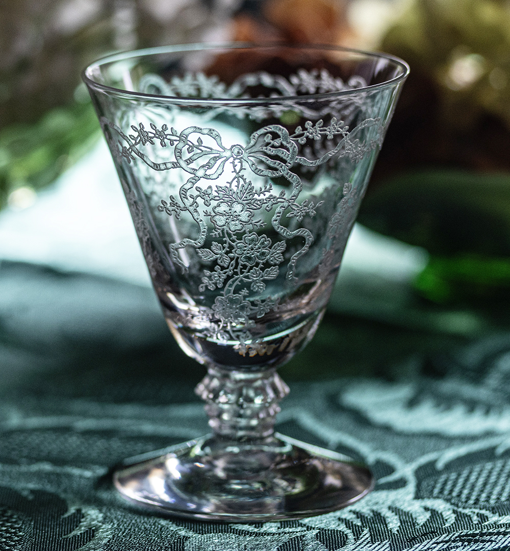 | 【 商品の説明 】 フォストリア クリスタル ロマンス リボン フラワー エッチング オイスター リキュールグラス 製造年: 1942年~1950年代 製造国: アメリカ 直径 7.1cm 高さ 9.1cm 容量 110ml フォストリアグラス”ロマンス”シリーズのリボンとフラワーのエッチングが施されたクリスタルガラス製のリキュールグラスです。 ヒビなく、ツヤがあり、とても綺麗な状態です。リムの外側に2ミリのざらつきが1ヵ所(画像参照)ある以外は、使用感もなくとても艶やかです。 発送サイズ: 60サイズ (下記の料金表を参照してください)1 ・・・・・・ 商品はすべてアメリカ、ヨーロッパのアンティーク、ビンテージグラスになります。 当時の製造技術によるガラスの歪みやしわ、経年による細かいキズや擦れ等はどの商品にも見られますので、特にひどいもの以外は説明を省略しております。 グラスひとつひとつに特徴があることをご理解いただきまして、入札をしていただけたらと思います^^。 複数の商品を購入していただきますと、まとめて発送しますので送料がお得になります。 ( こちらをクリックしますと他の出品商品を一覧できます) 商品のお取置きをご希望の際には、落札後の最初のメールでお知らせください。 ご不明な点がございましたら、どうぞ終了1日前までにご質問ください。 ・・・・・・