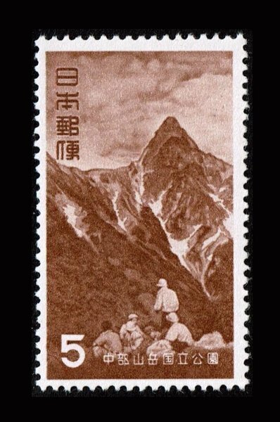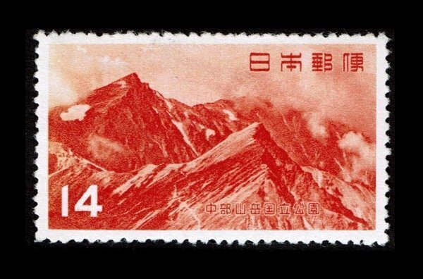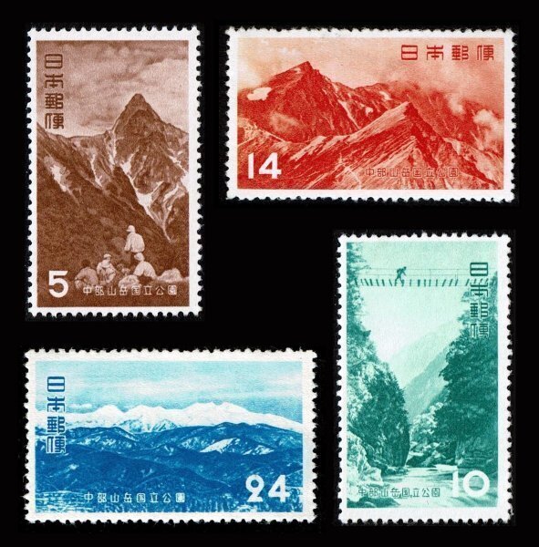 1952年 第1次国立公園切手 中部山岳 4種完 糊落ち 未使用
