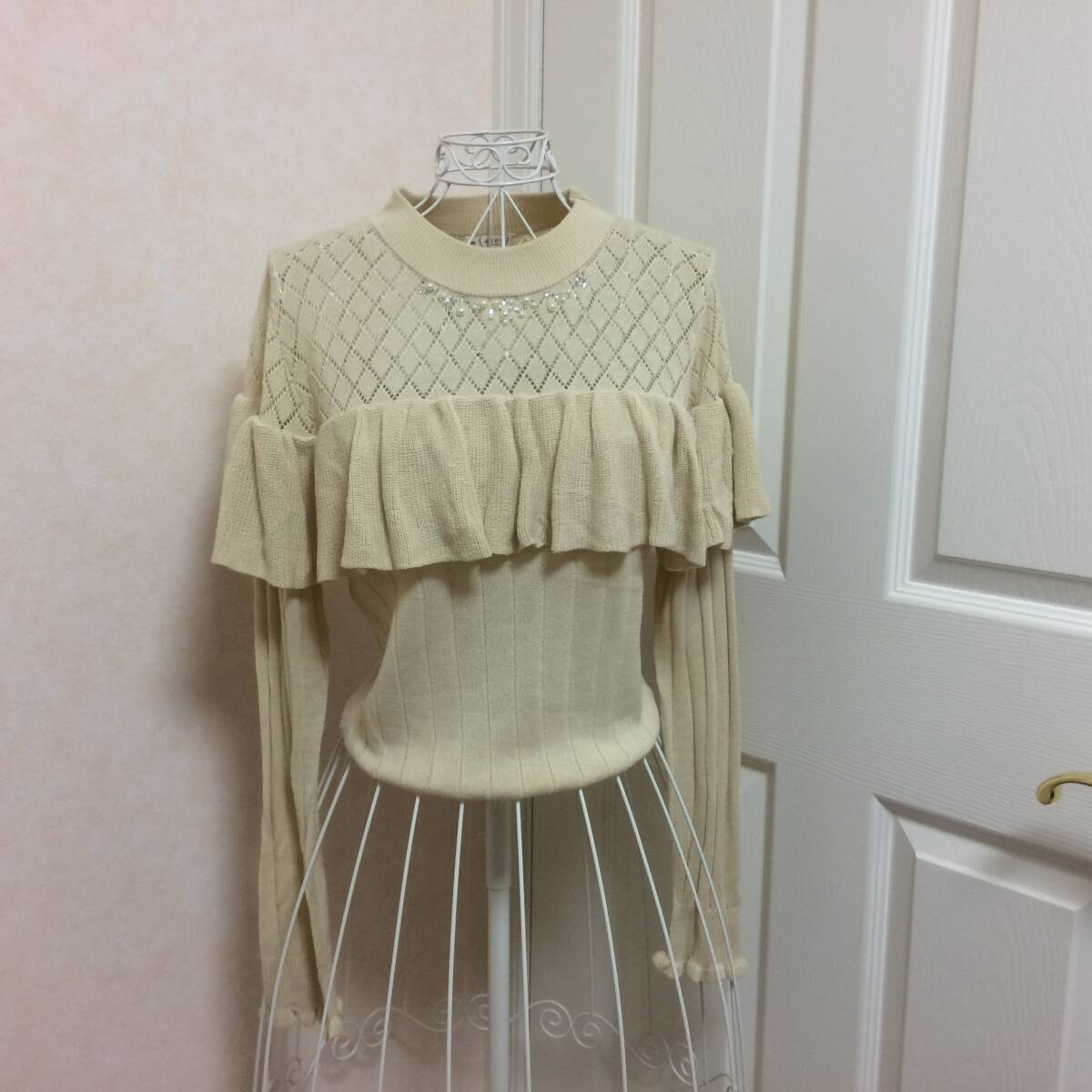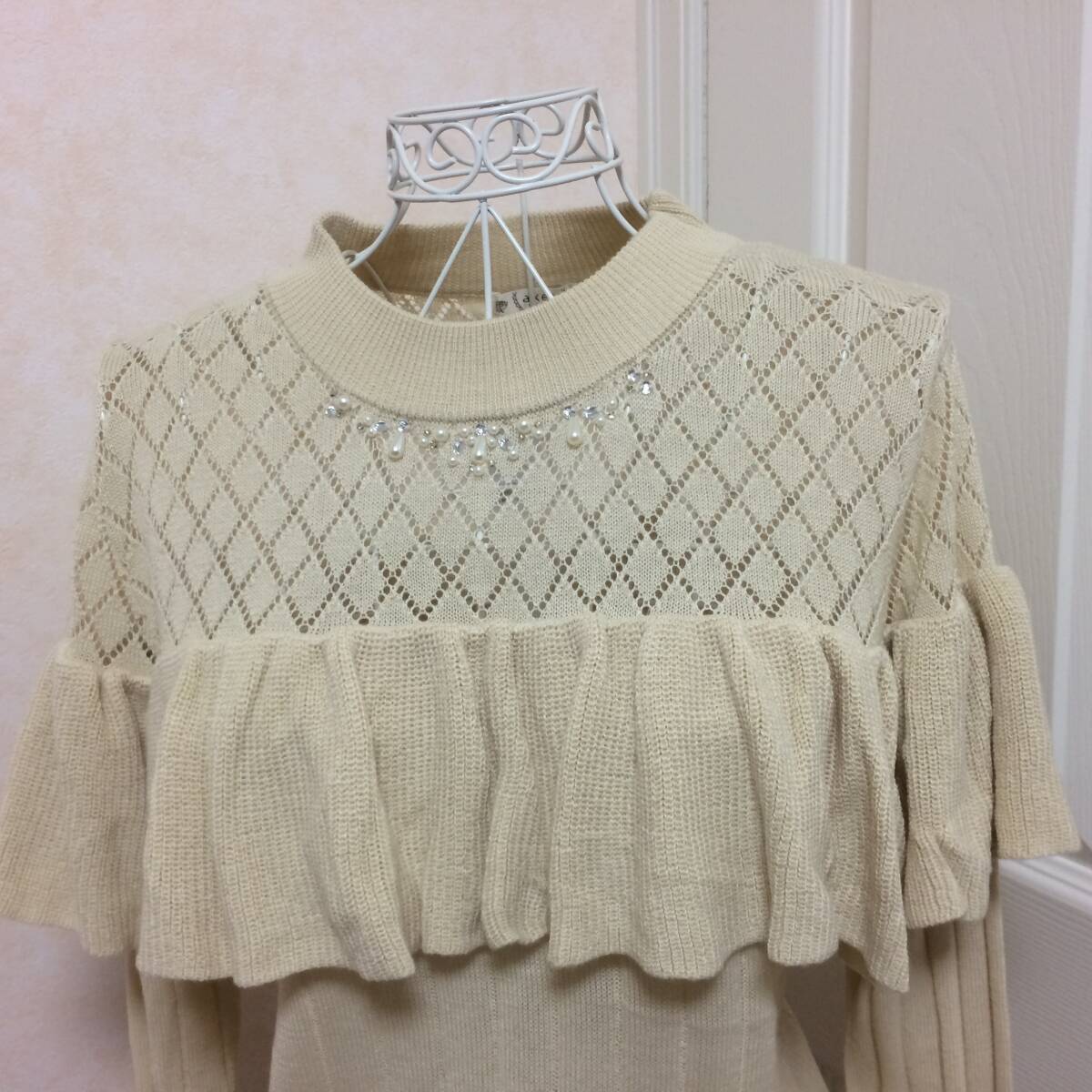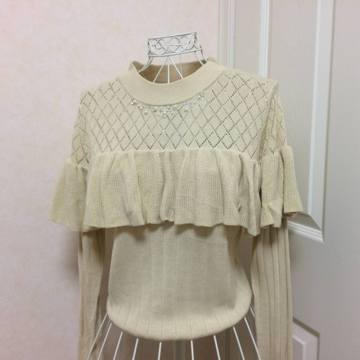 新品!axes femme 編地切り替えフリルニットプルオーバー★アクシーズファム トップス 長袖 秋 冬 ニット 生成り きなり キナリ ブランド