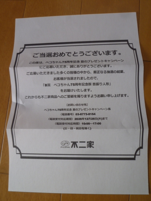 不二家 ペコちゃん75周年記念 夏のプレゼントキャンペーン 当選品