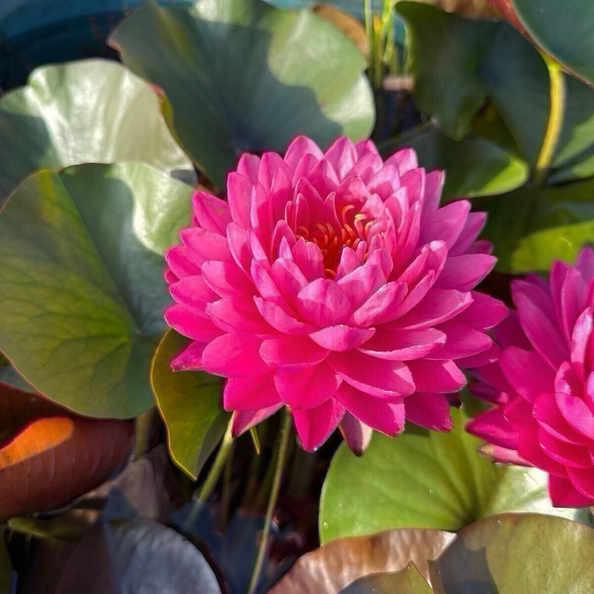 濃いピンク八重咲大輪の睡蓮になります。