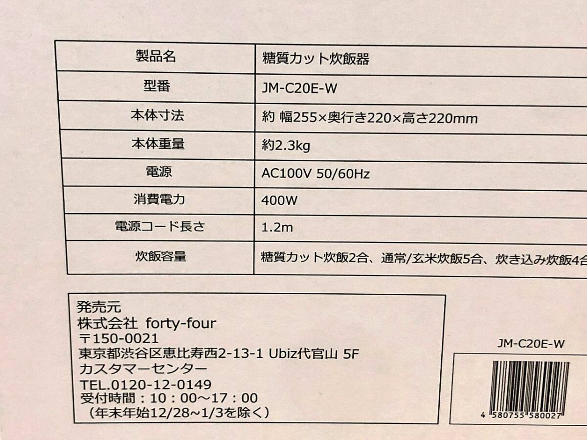 未使用 LOCABO 糖質カット炊飯器 JM-C20E-W 元箱発送 管BCAR