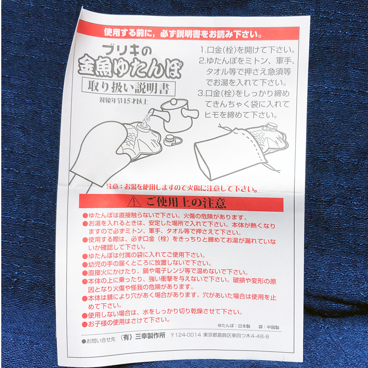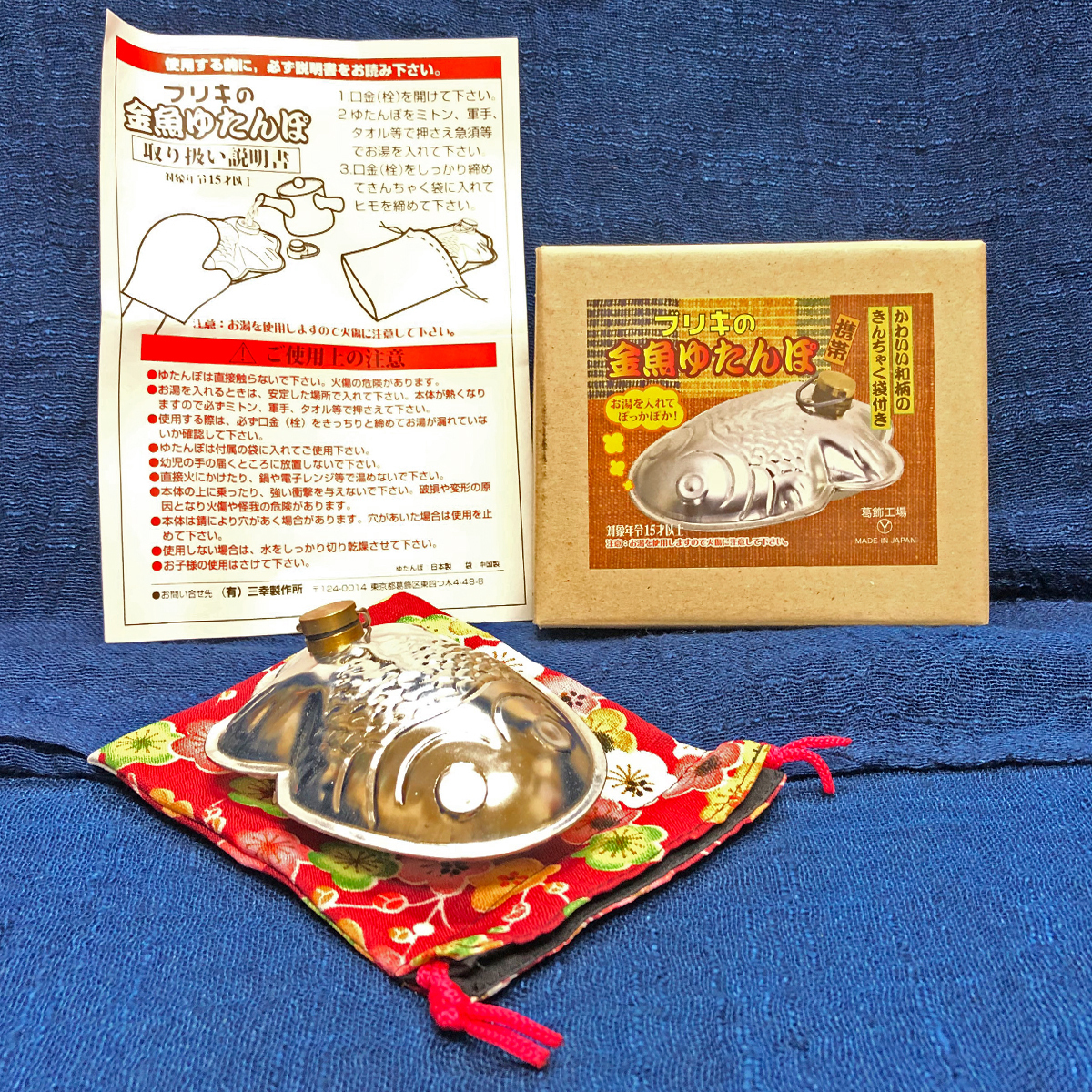 三幸製作所 金魚シリーズ 和柄ケース付 ソリッドブリキ 湯たんぽ BCTT112-2