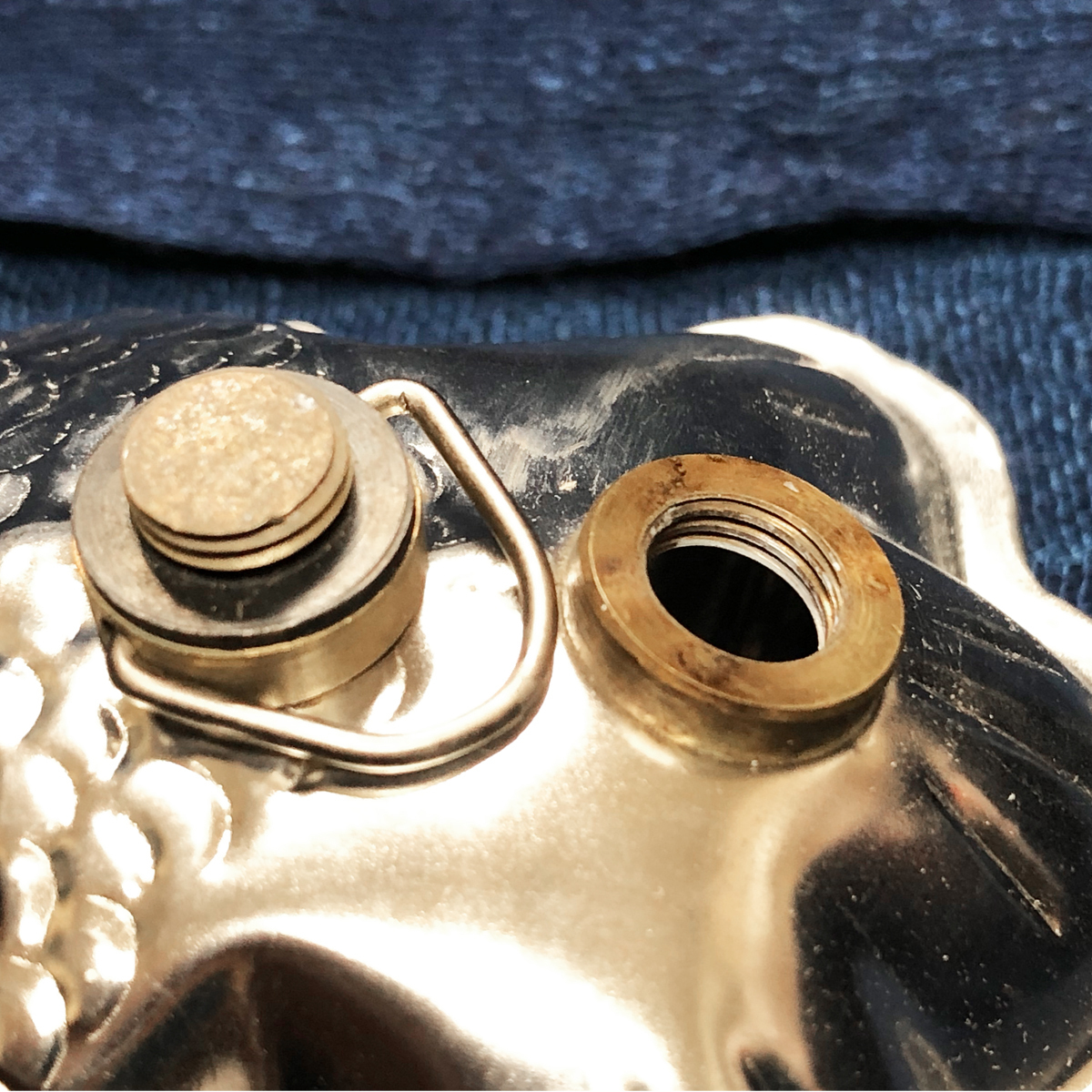 錆びにくい・錆に強いといったブリキの特性をうまく利用した湯たんぽです。 ブリキ独特の鈍い輝きを持つ金魚湯たんぽ。 その名の通りお湯を入れて湯たんぽに! この暑い夏には冷たいブリキ色で水に浮かべてオブジェに! 綺麗な和柄プリントの湯たんぽカバーもカバー以外も色々と使えます。 当時のプレス技術の基本形のような素朴なブリキ湯たんぽです。 合わせの部分は一つずつシリコンのコーキングが施してあり、 お湯の注ぎ口は真鍮でしっかりロウ付され 大変手のかかった品物です。 可愛い箱はと和柄保護ケースが付きます。 |
