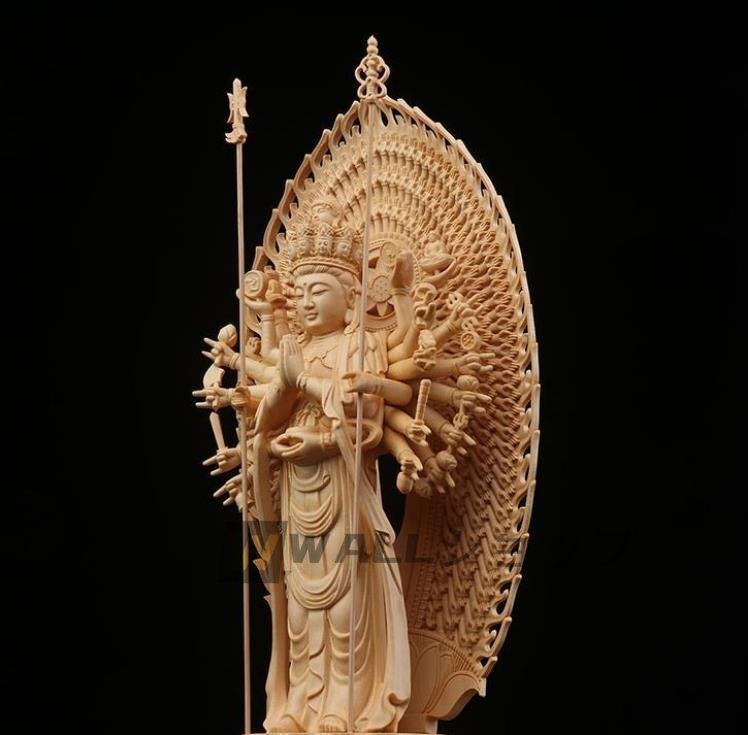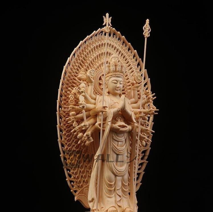 品質保証★新入荷★ 極上品 仏教美術 千手観音菩薩 精密彫刻 仏像 手彫り 木彫仏像 仏師手仕上げ品