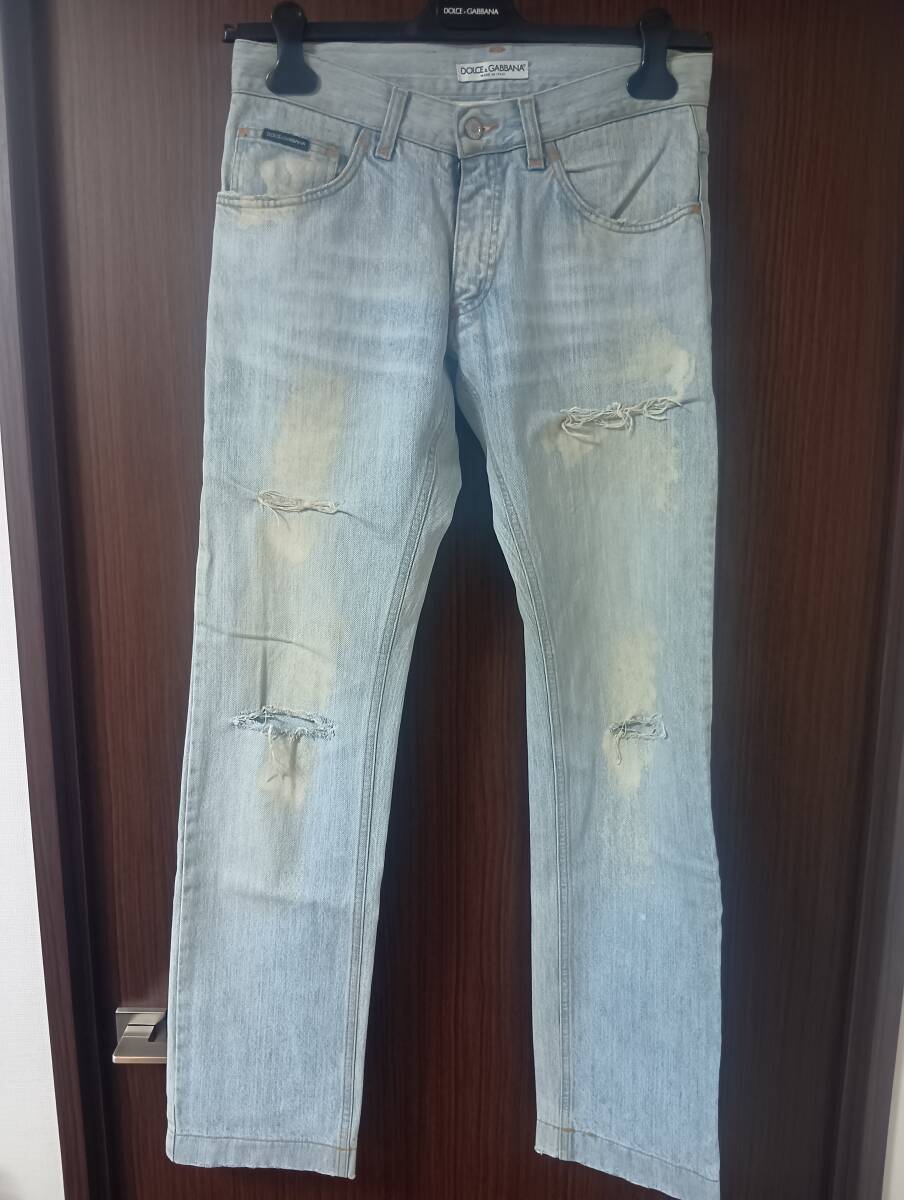 【希少・アーカイブ】DOLCE & GABBANA ドルチェ&ガッバーナ 2002SS ペンキ加工 クラッシュデニム ジーンズ アイスブルー 44