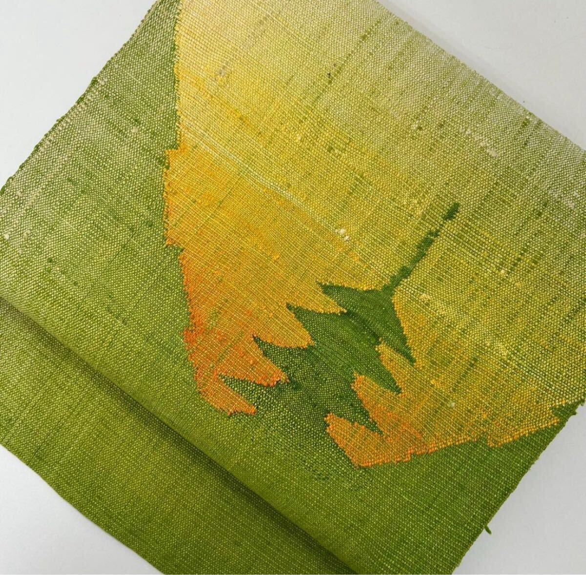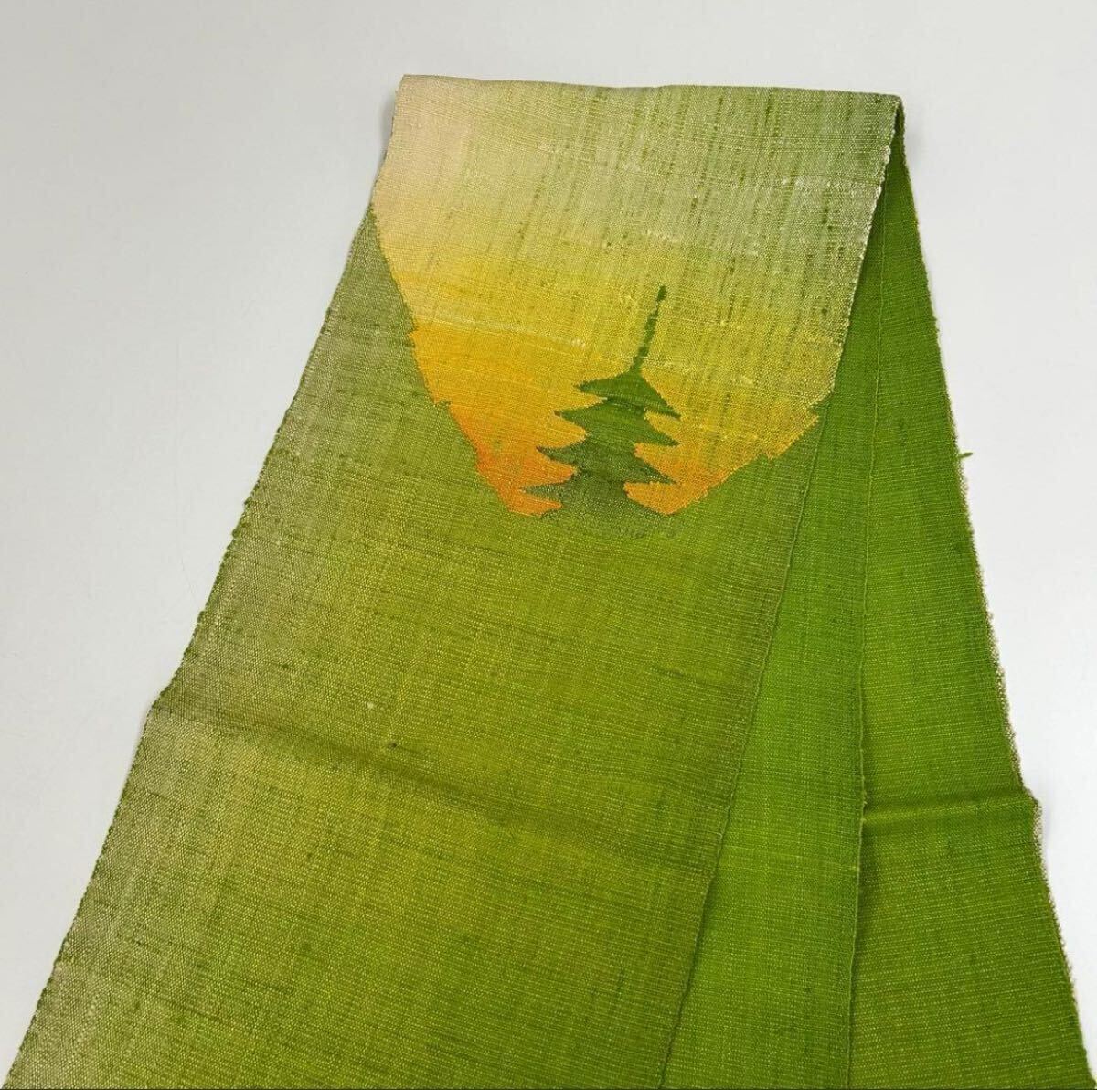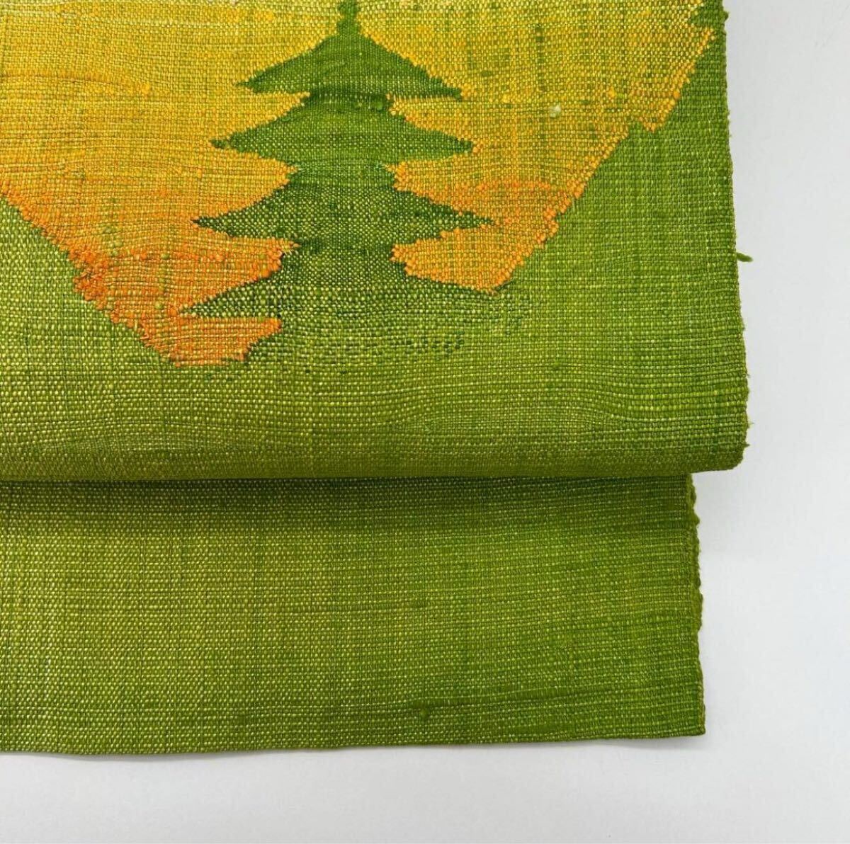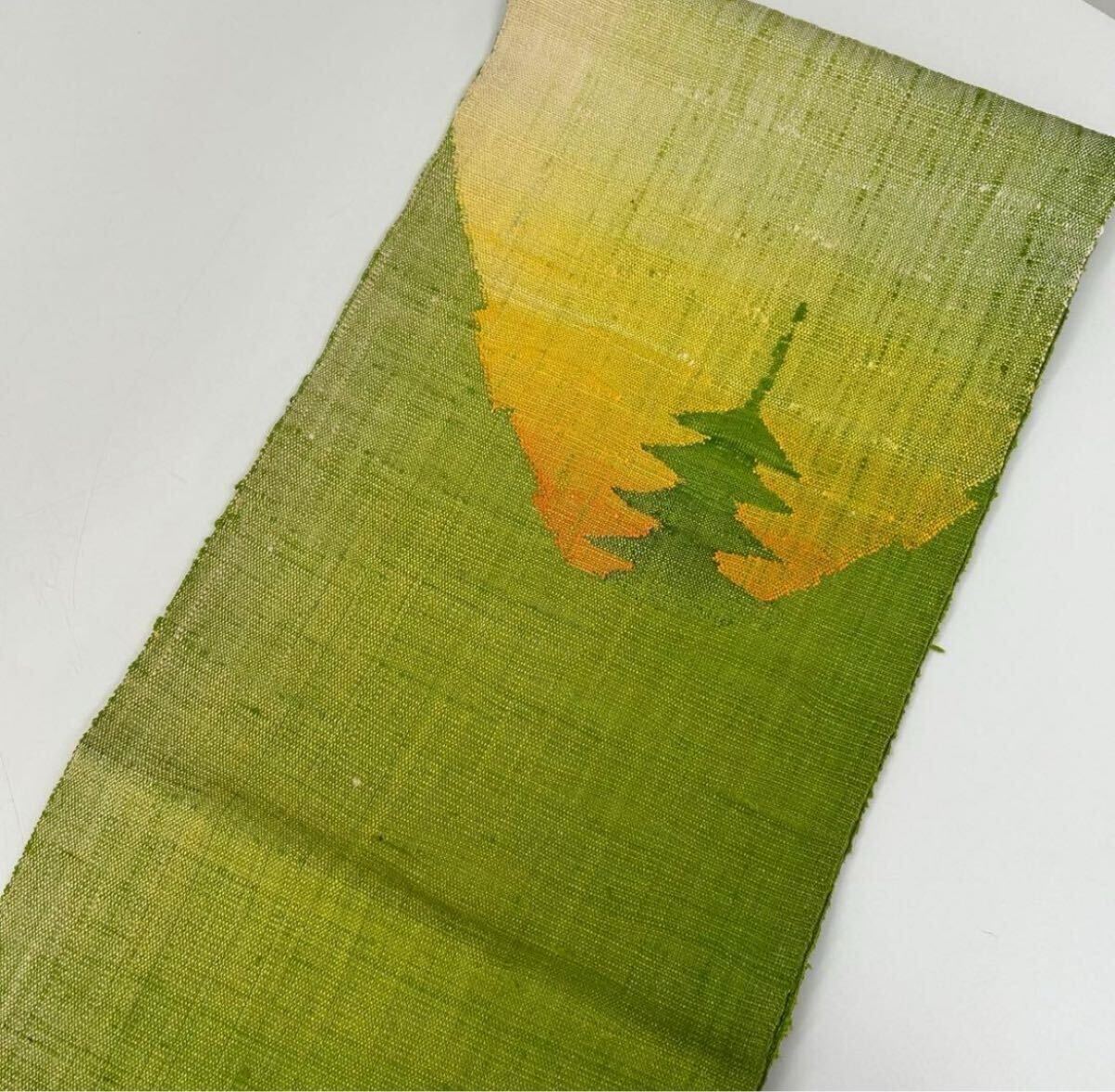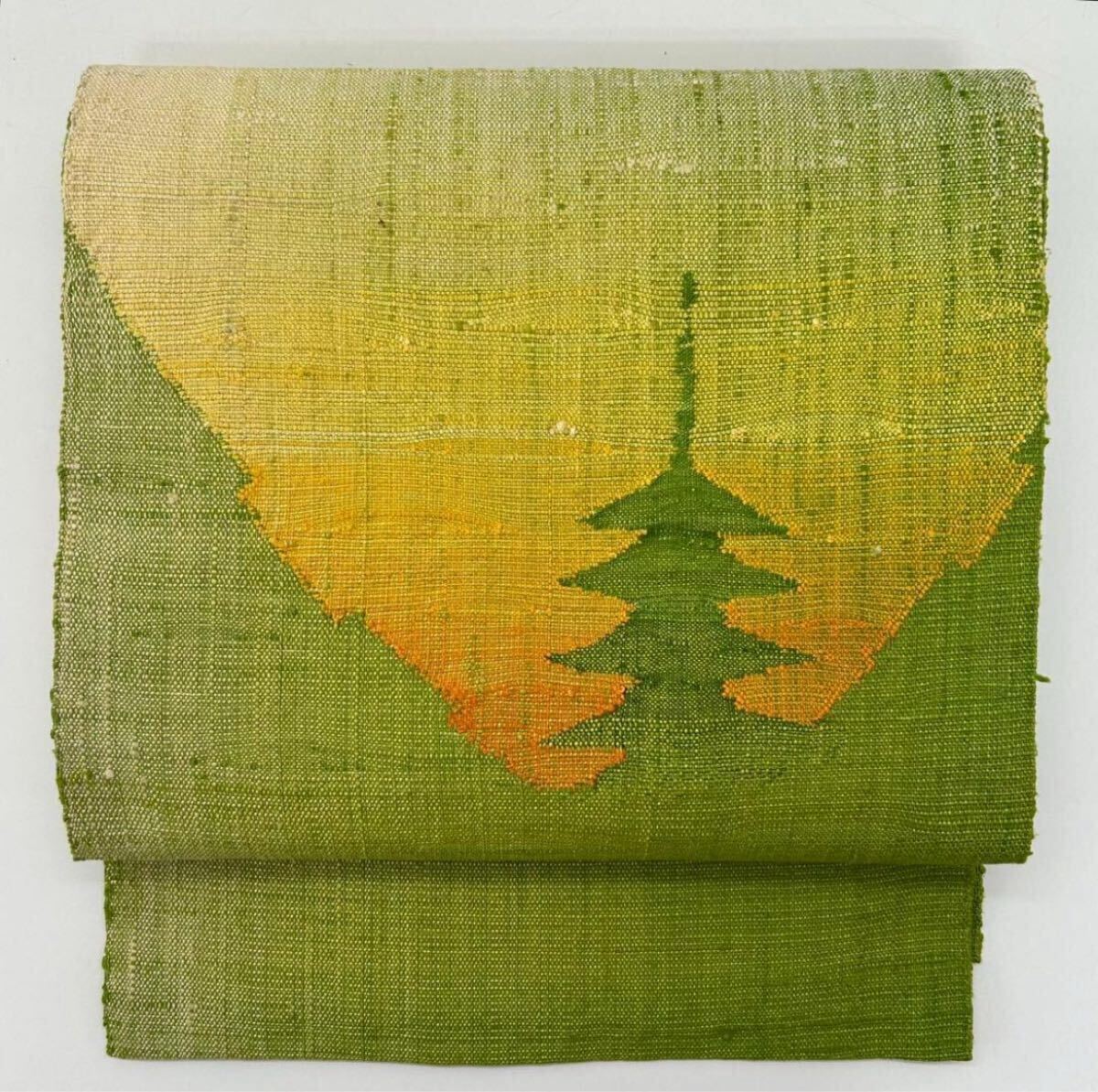 【楓】名古屋帯 正絹 夕焼け 京都 御所 五重塔 グラデーション 紬 KU-1832