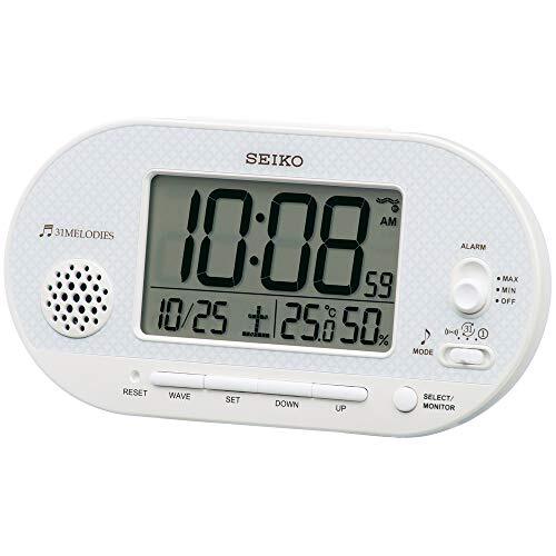 セイコークロック(Seiko Clock) 置き時計 白パール 本体サイズ: 8.1×15.9×4.9cm 目覚まし時計 電波 デジタル 温度