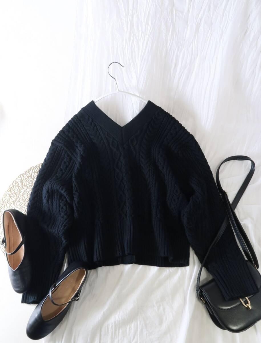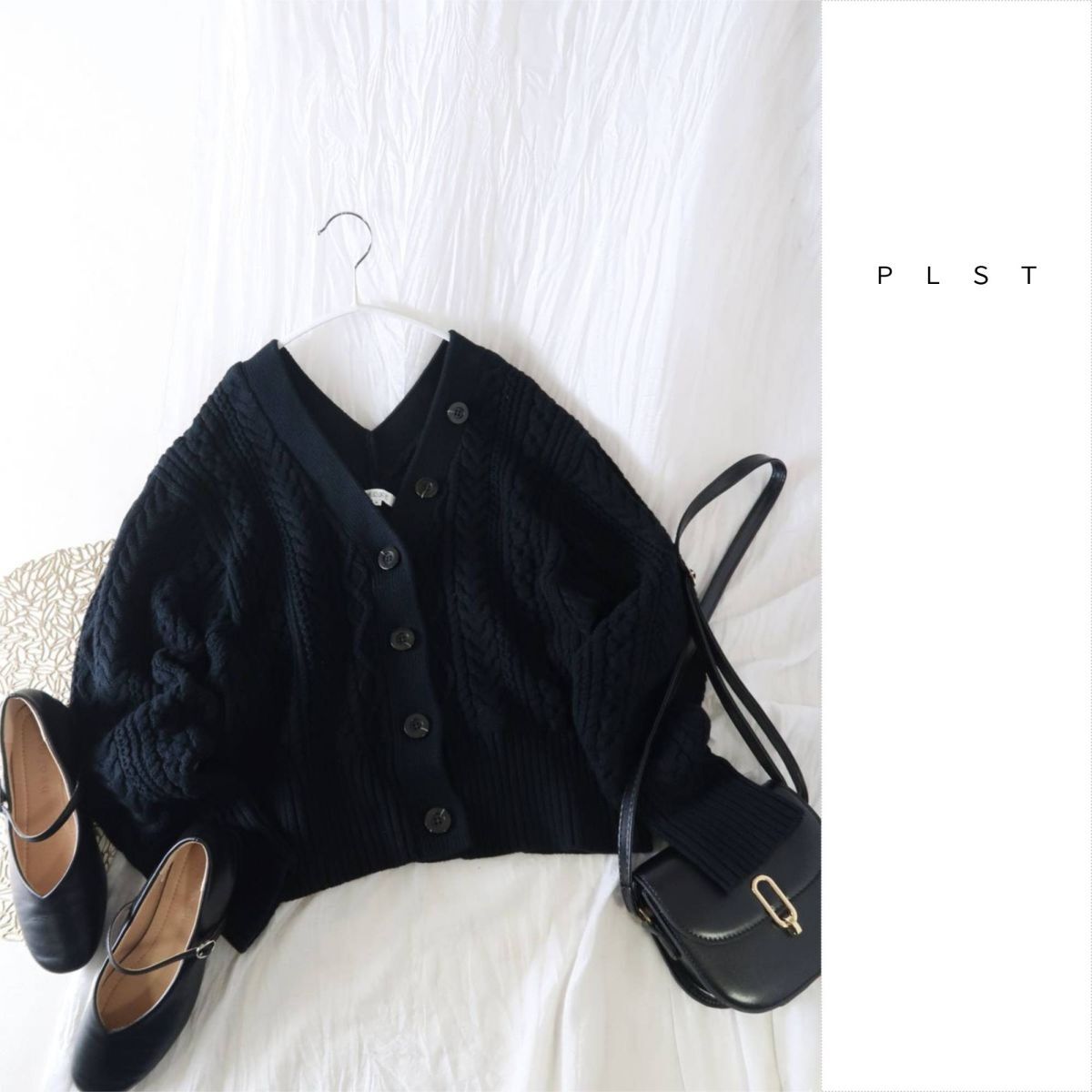 プラステ PLST☆洗える 前後Vネック ケーブルカーディガン Mサイズ☆A-O 6098