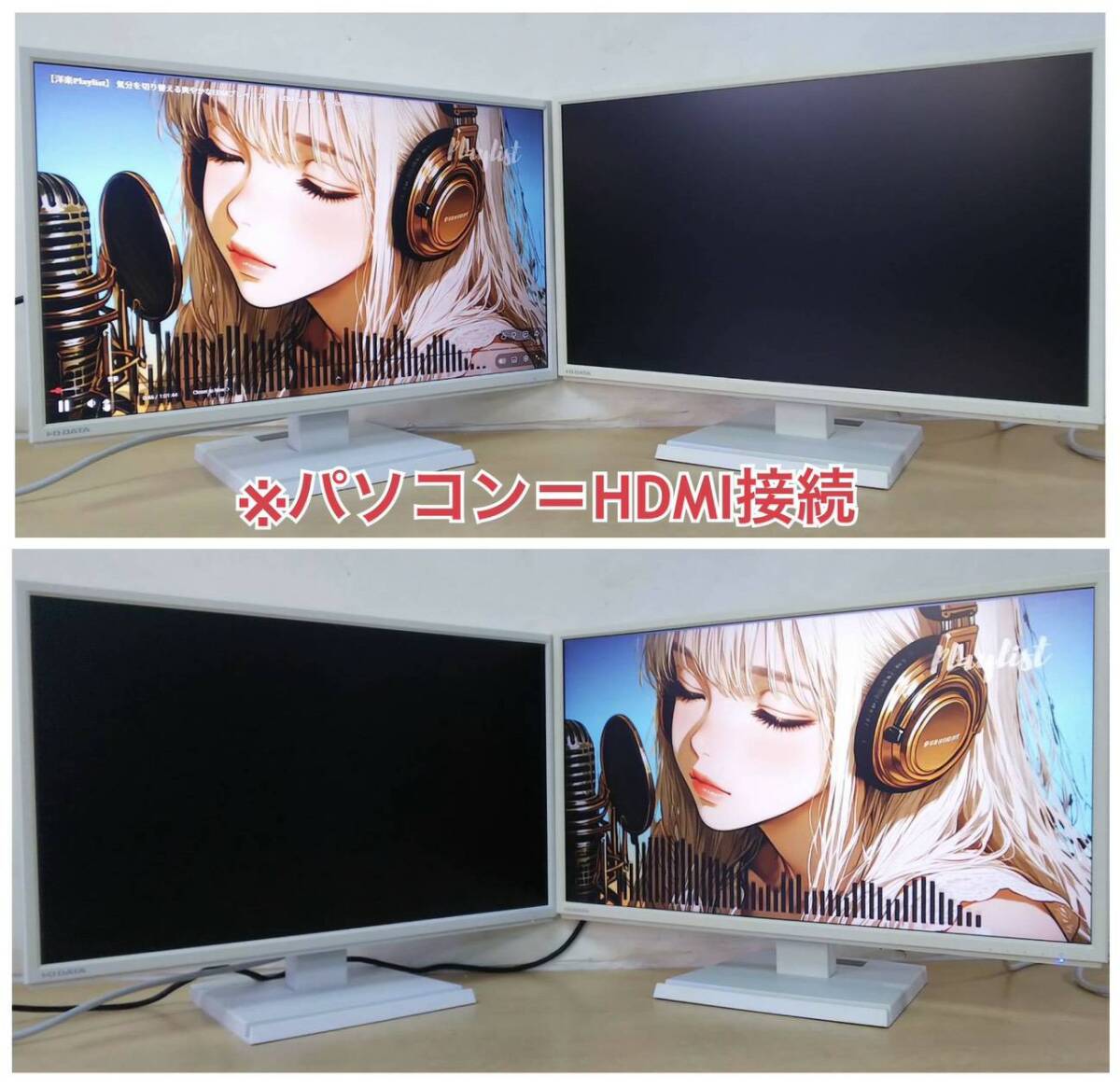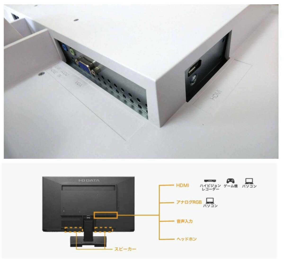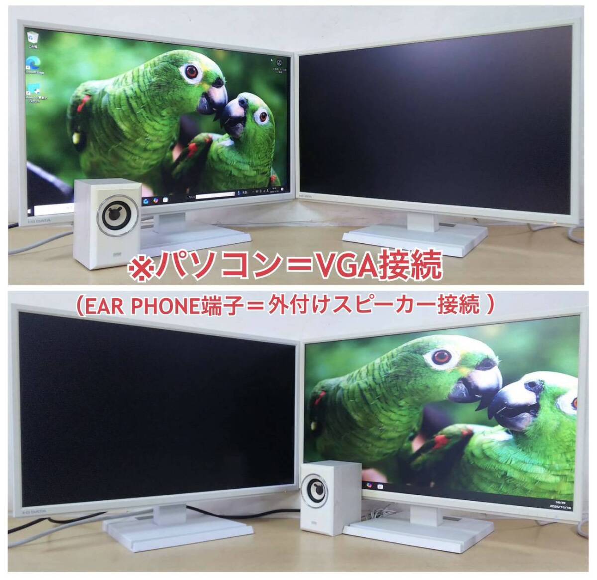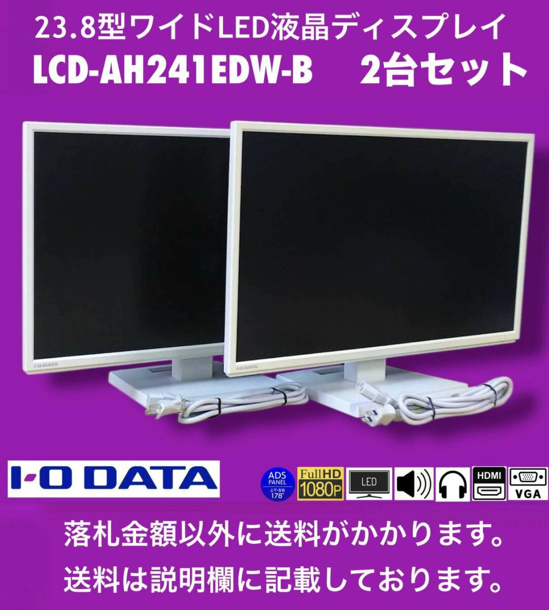 やや日焼けあり I-O DATA 23.8型ワイドLEDディスプレイ LCD-AH241EDW-B 2台セット 中古動作品