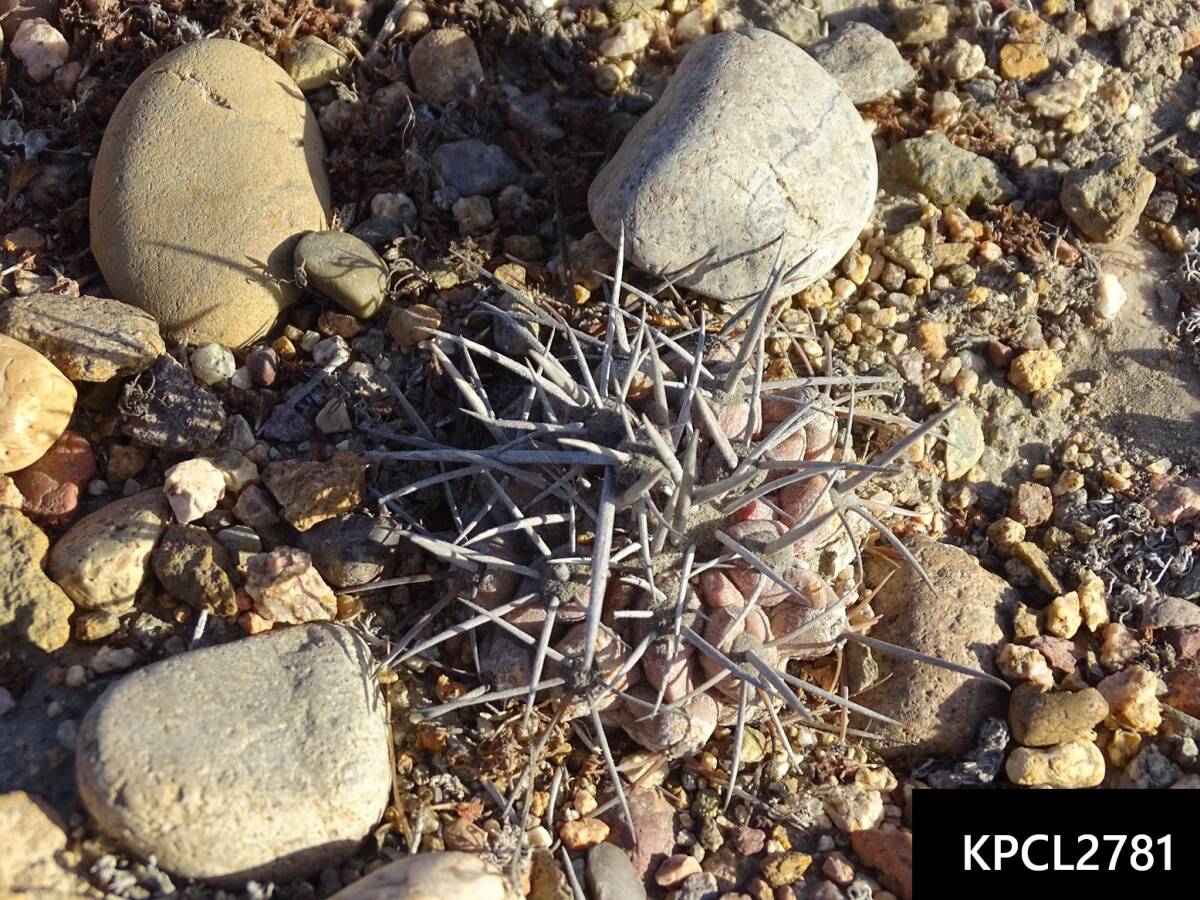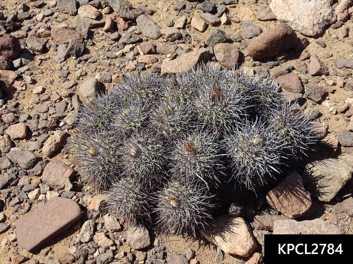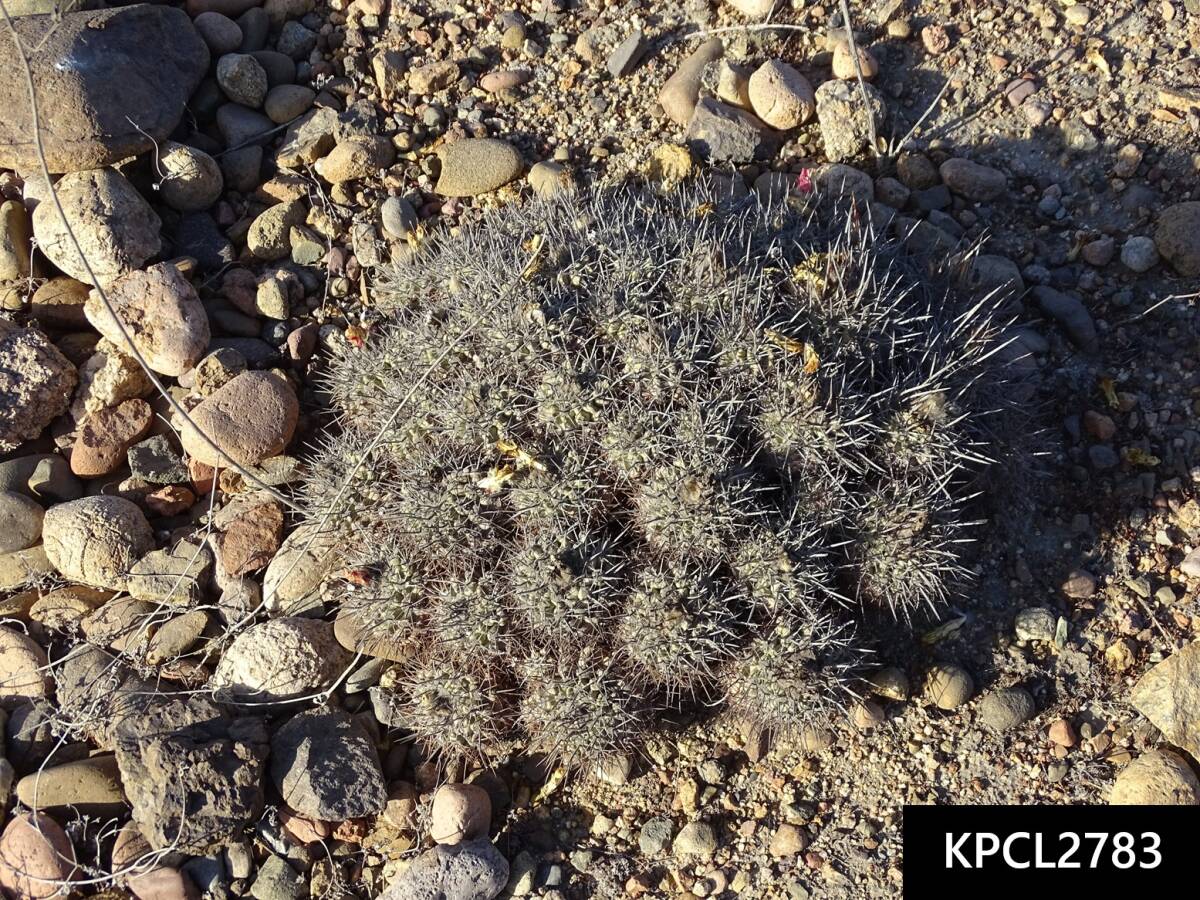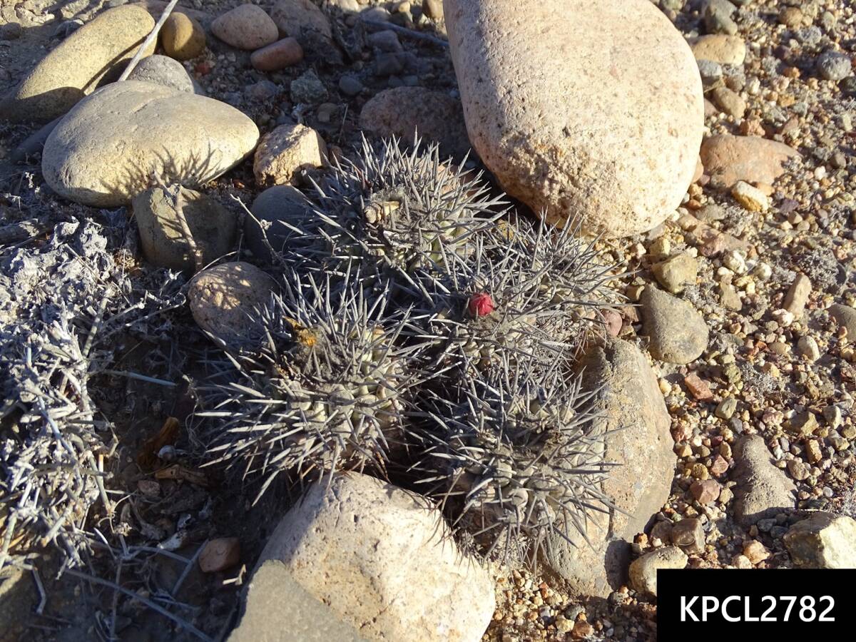 特徴・・・最南端の個体群で、扁平でゴツゴツした体。刺は太く湾曲し、粉をまとっています。赤花タイプ
